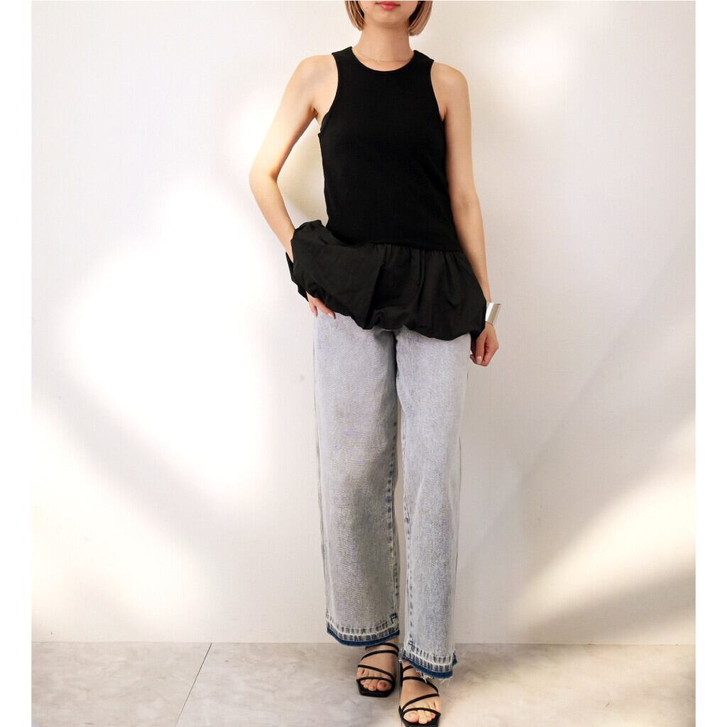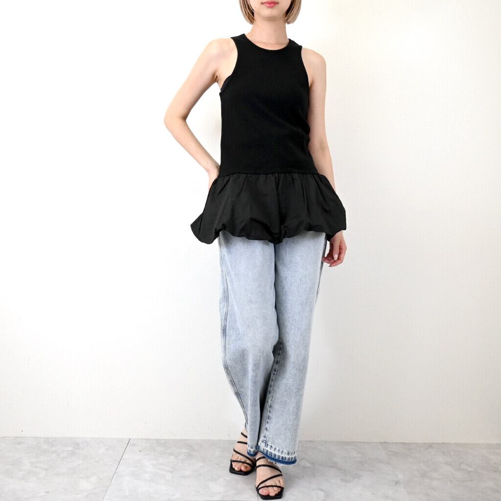 裾のバルーンシルエットが可愛くて女性らしいおしゃれが楽しめるおすすめトレンドタンクです⭐︎