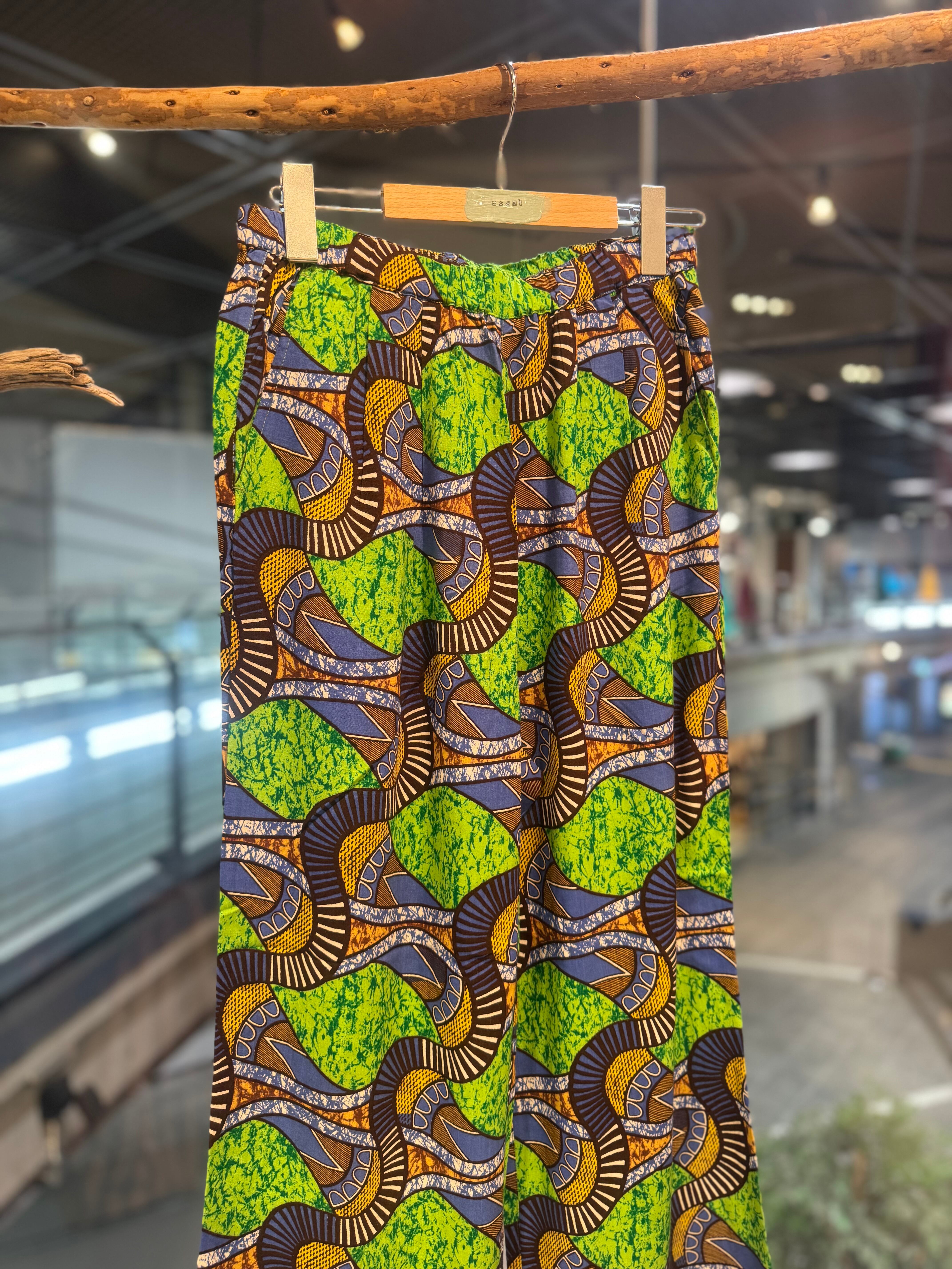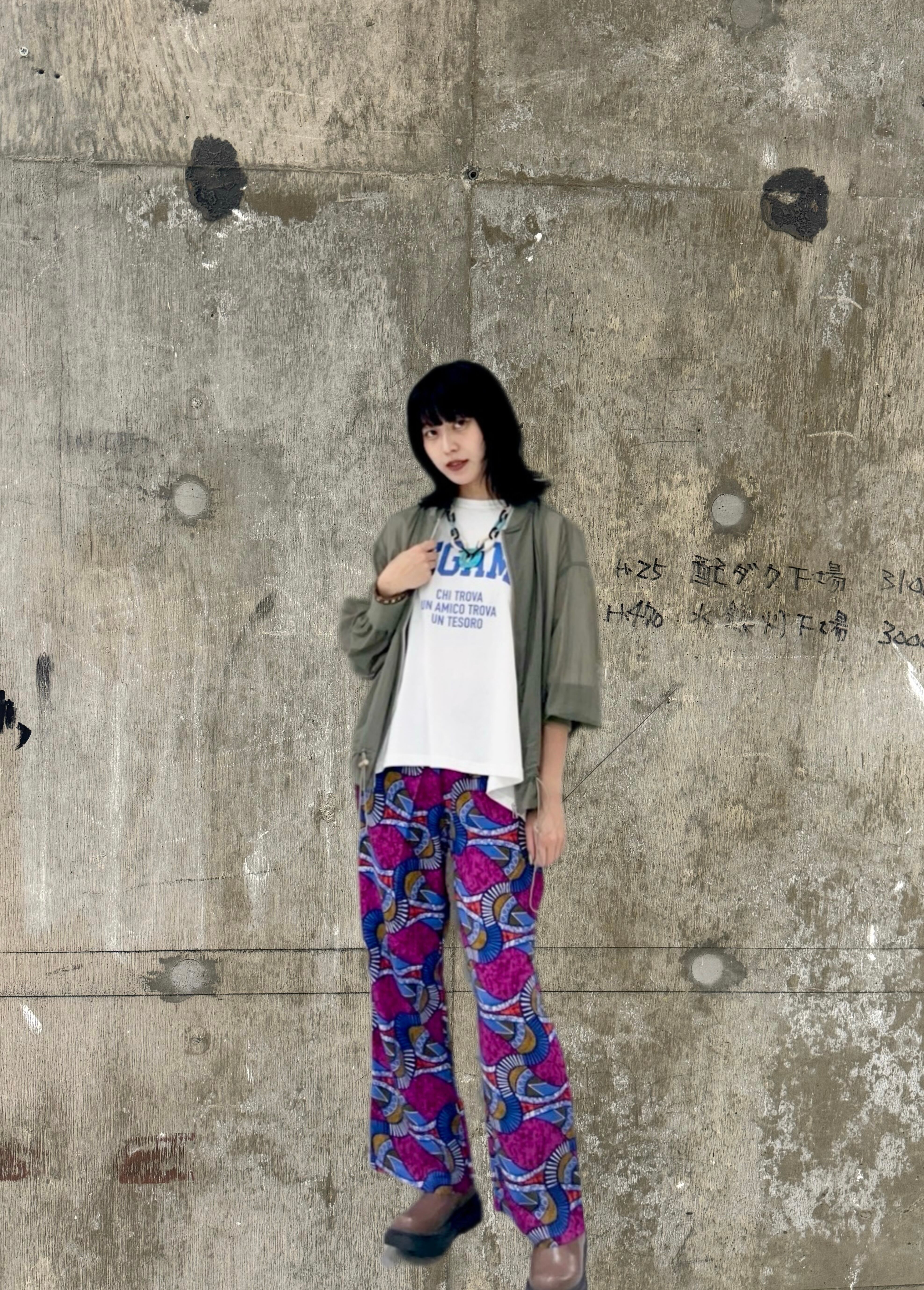 2カラー パープル/グリーン モデル着用パープル サイズ フリー モデル身長166 ウエスト全ゴム ウエスト66〜76 股上37 着丈97 素材 レーヨン93% 麻7%