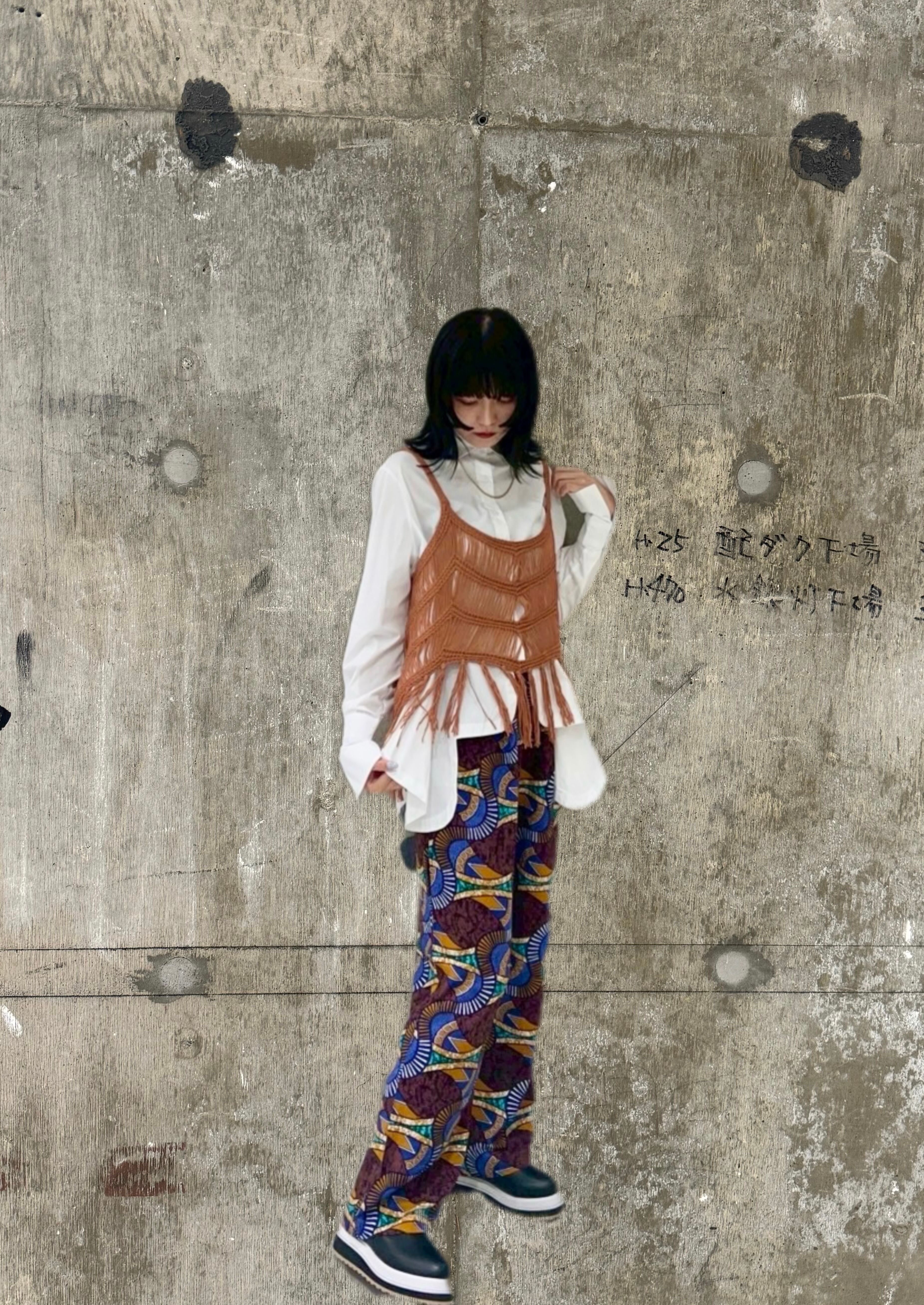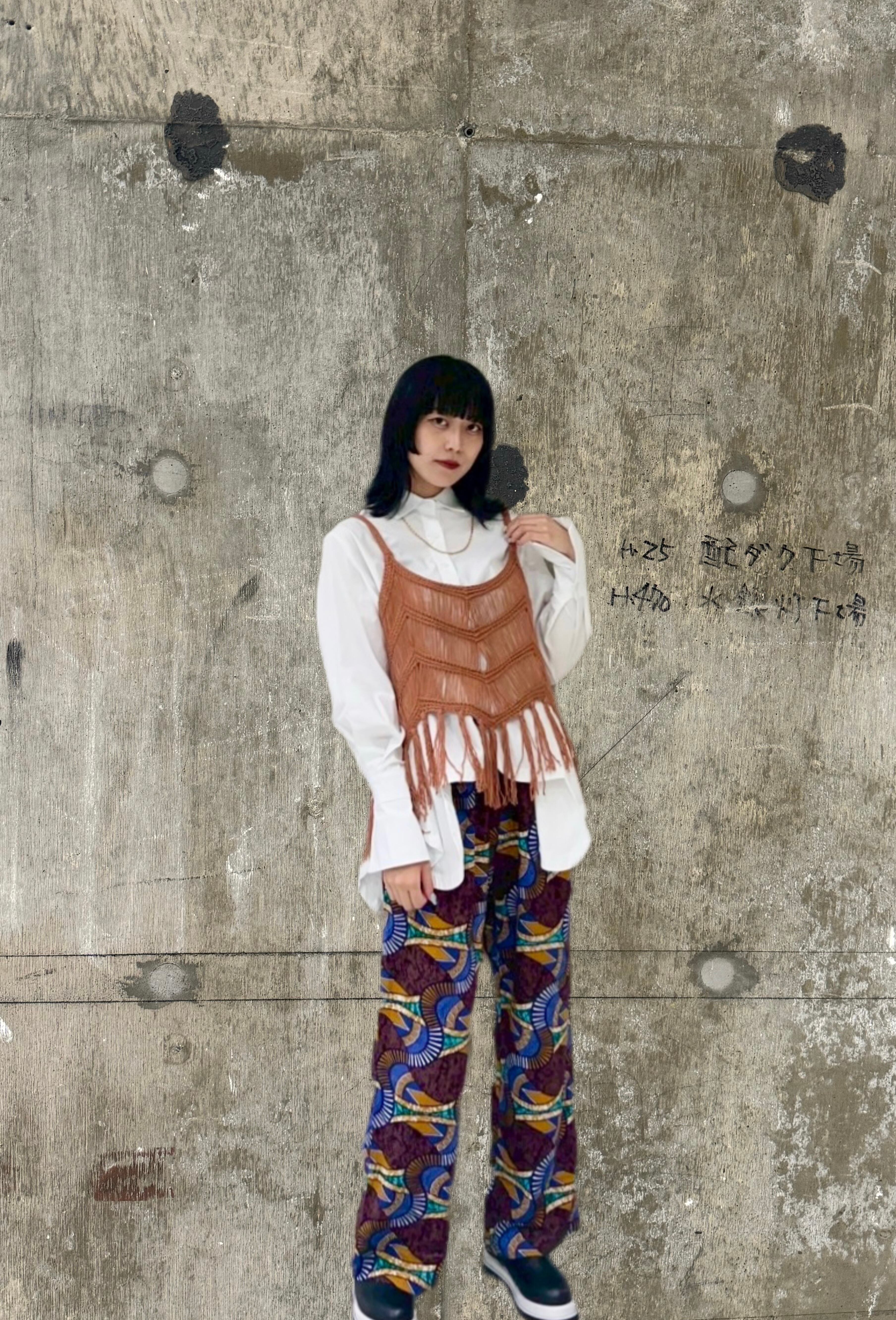 サイズ フリー モデル身長166 ウエスト全ゴム ウエスト66〜76 股上37 着丈97 素材 レーヨン93% 麻7%