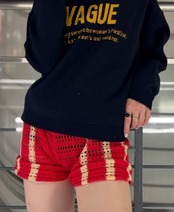 ニットショートパンツ 3カラー レッド/グリーン/アイボリー 裏地なし ウエスト全ゴム モデル身長157 ウエスト72〜80 股上34 着丈38 素材 アクリル80% ポリエステル20%