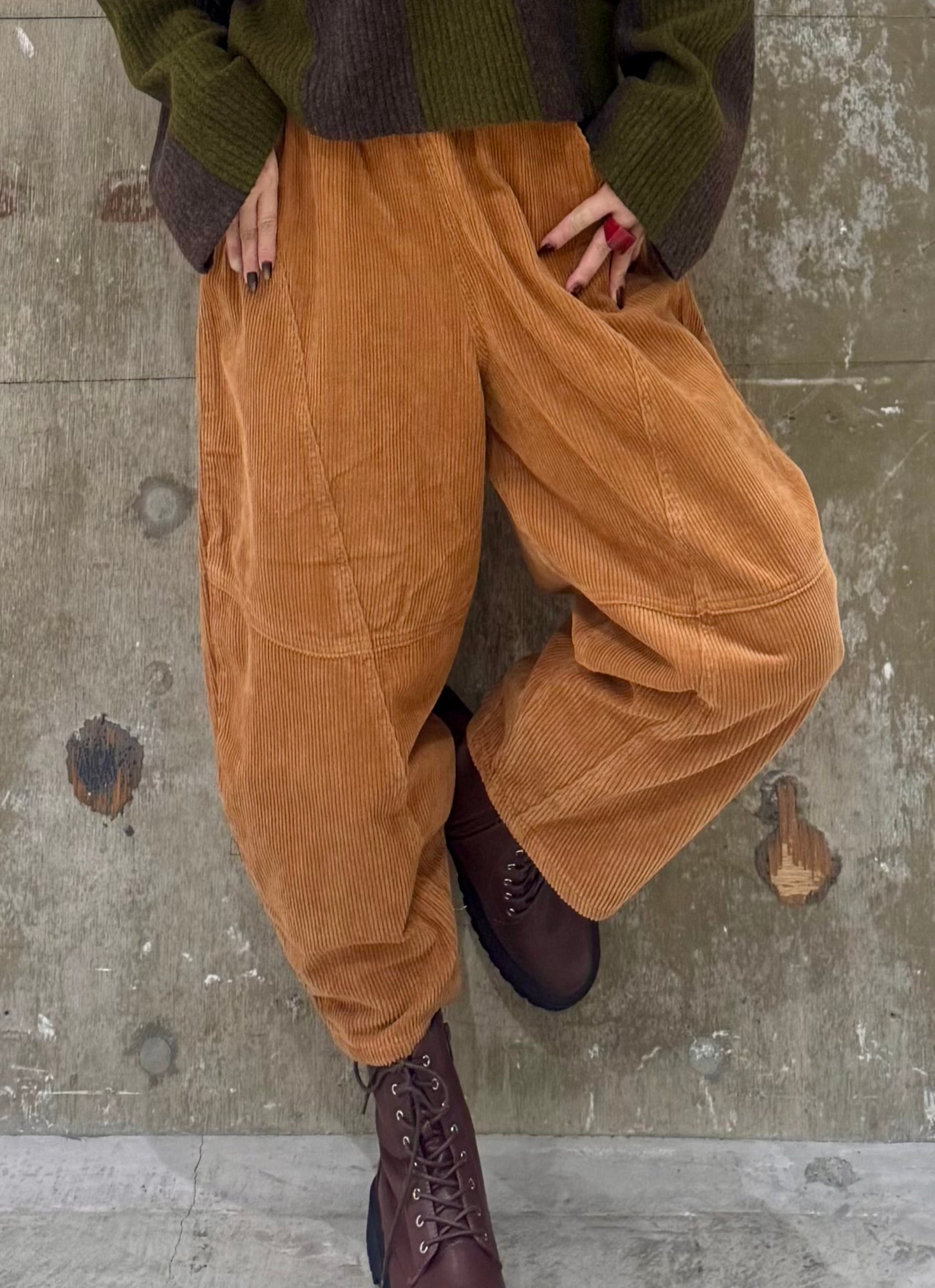 2カラー ブラウン/カーキ モデル着用ブラウン サイズ フリー モデル身長158 ウエスト全ゴム 調節紐あり ウエスト70〜80 股上35 着丈86 素材 綿100%