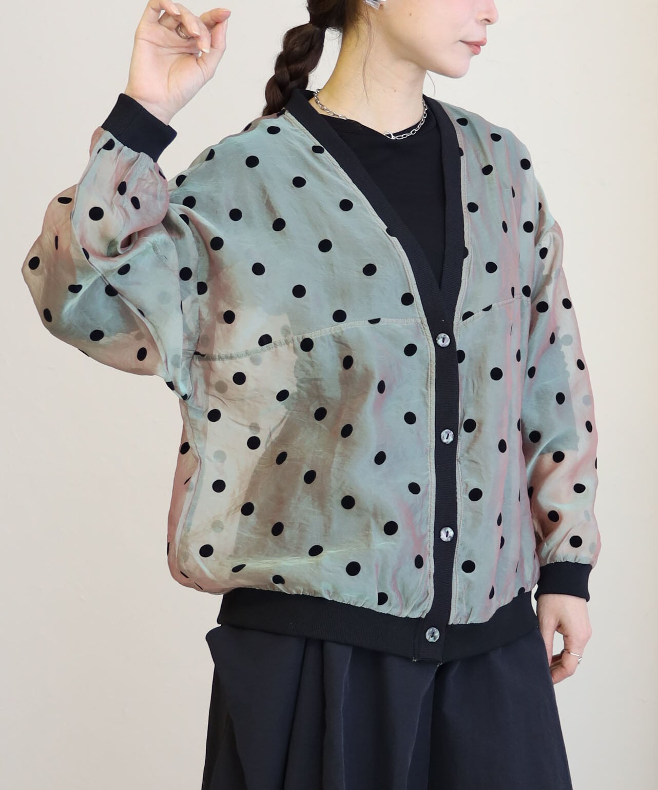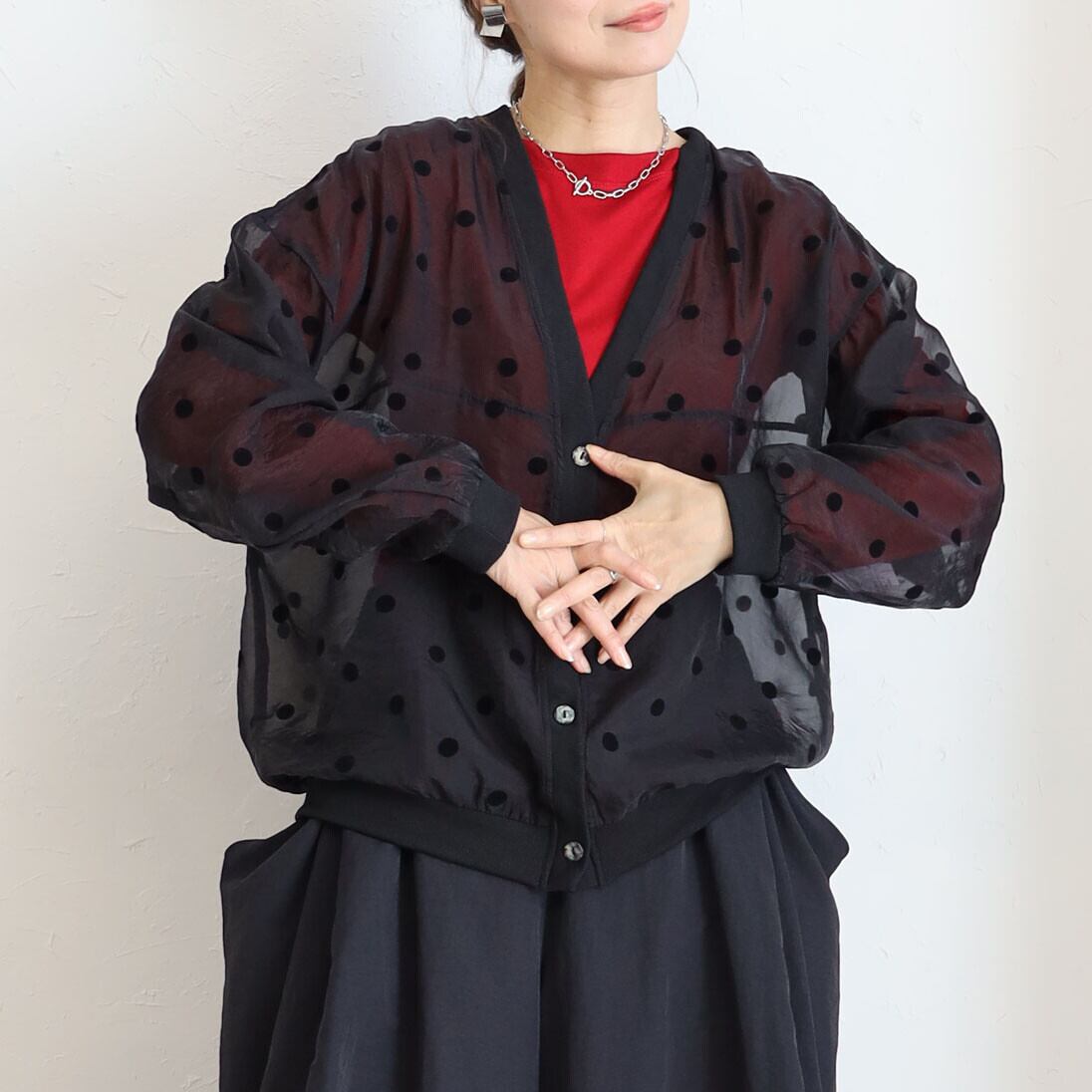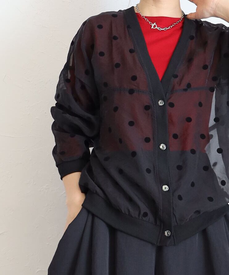 軽やかなシアー素材にドット柄をあしらったフェミニンなカーディガン⭐︎