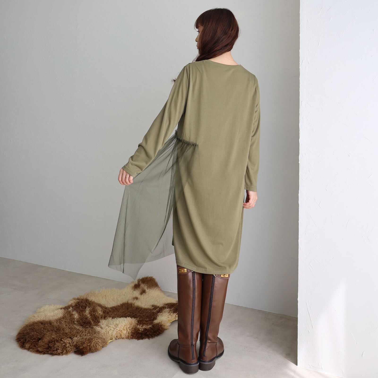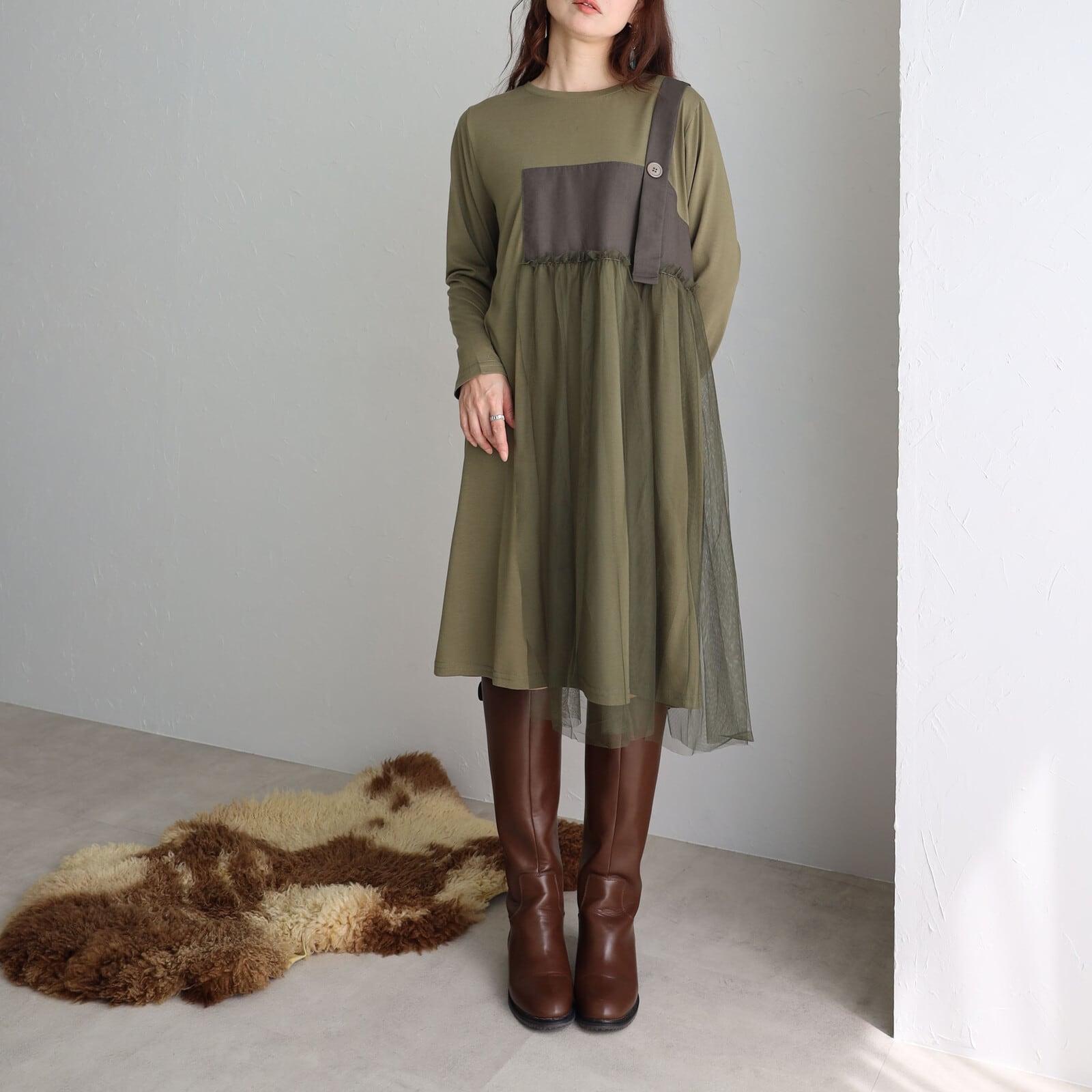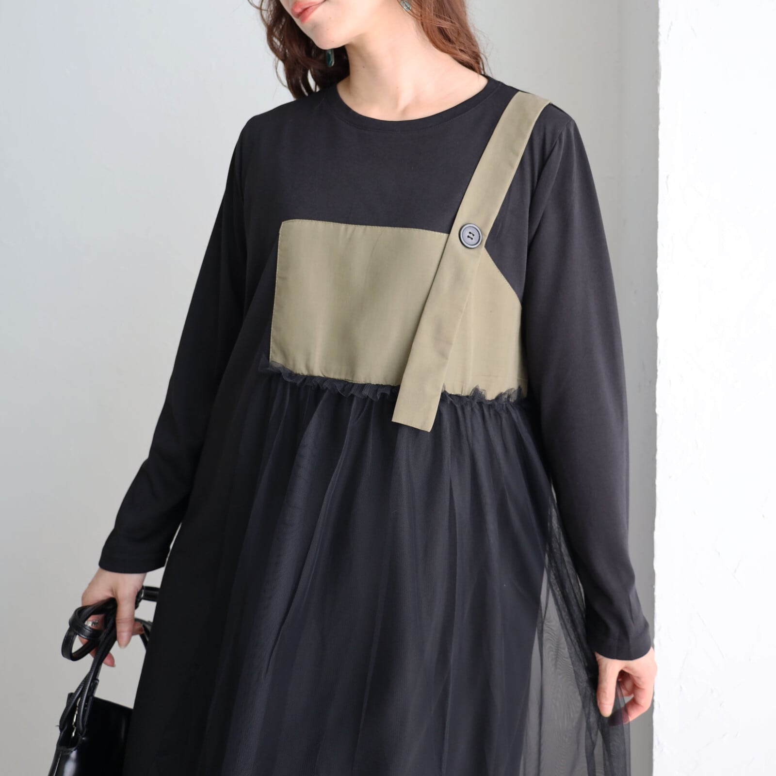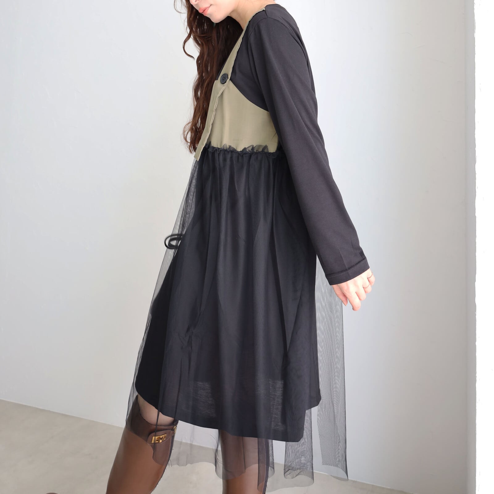 チュール×ワンピースがさりげなく上品な華やかさを感じる1枚⭐︎ 心地よさとオシャレを両立させたワンピースゆったりと着心地でウエスト周りもカバーお出かけ着にはもちろんデイリーにも幅広く活躍します。 【素材・成分】 ポリエステル100% メッシュ ポリエステル100% 別布 ポリエステル80% 綿20%