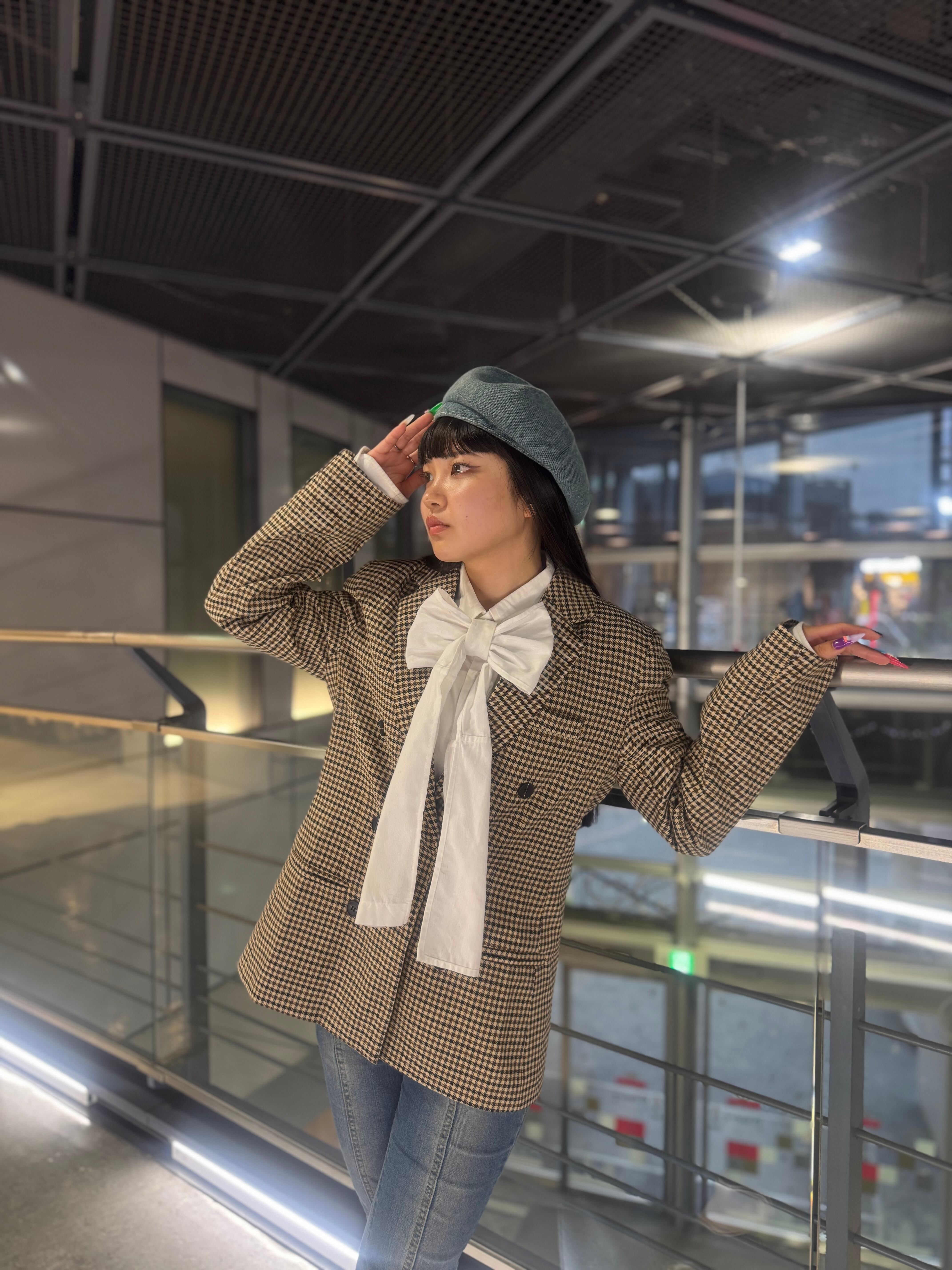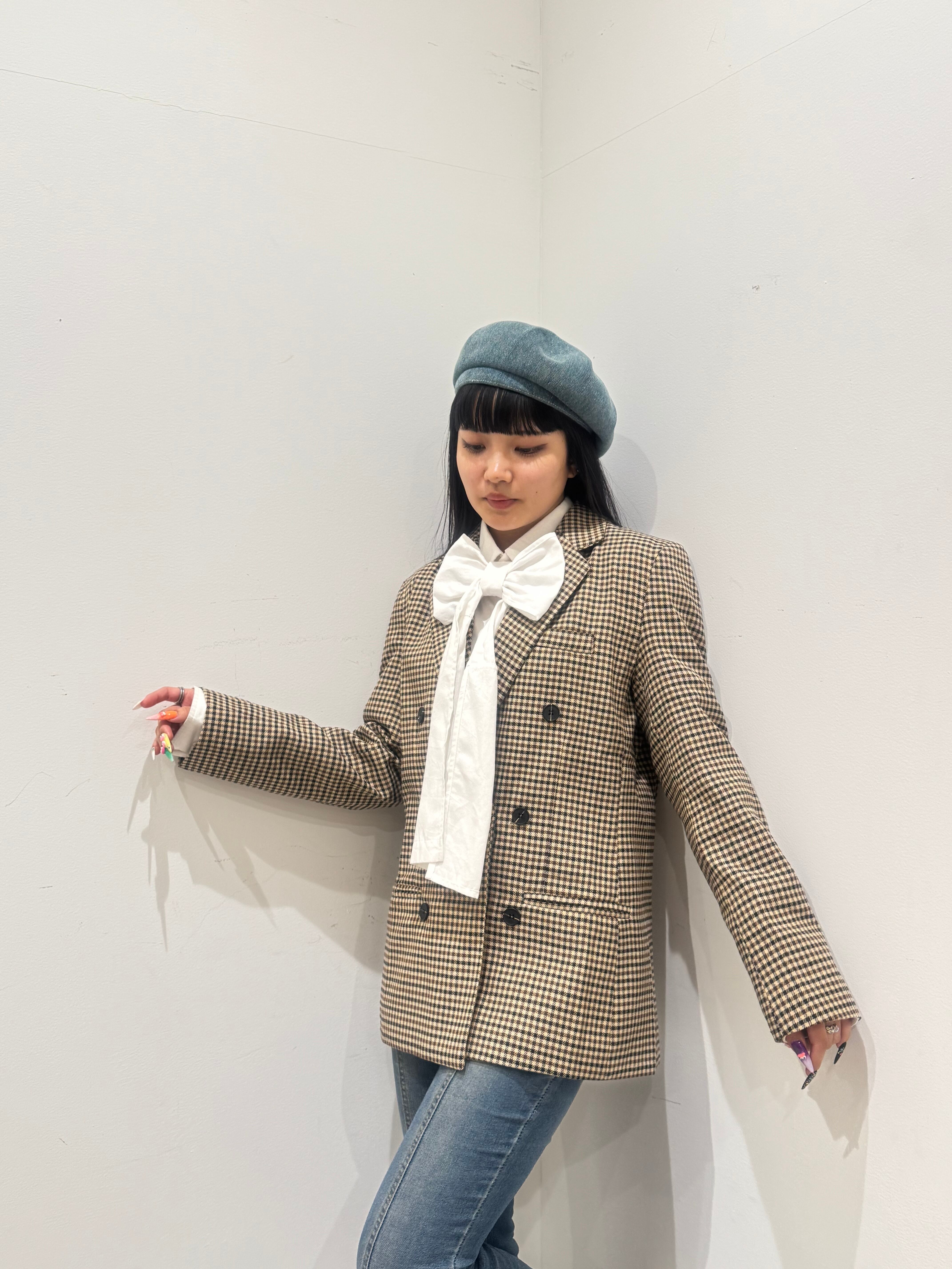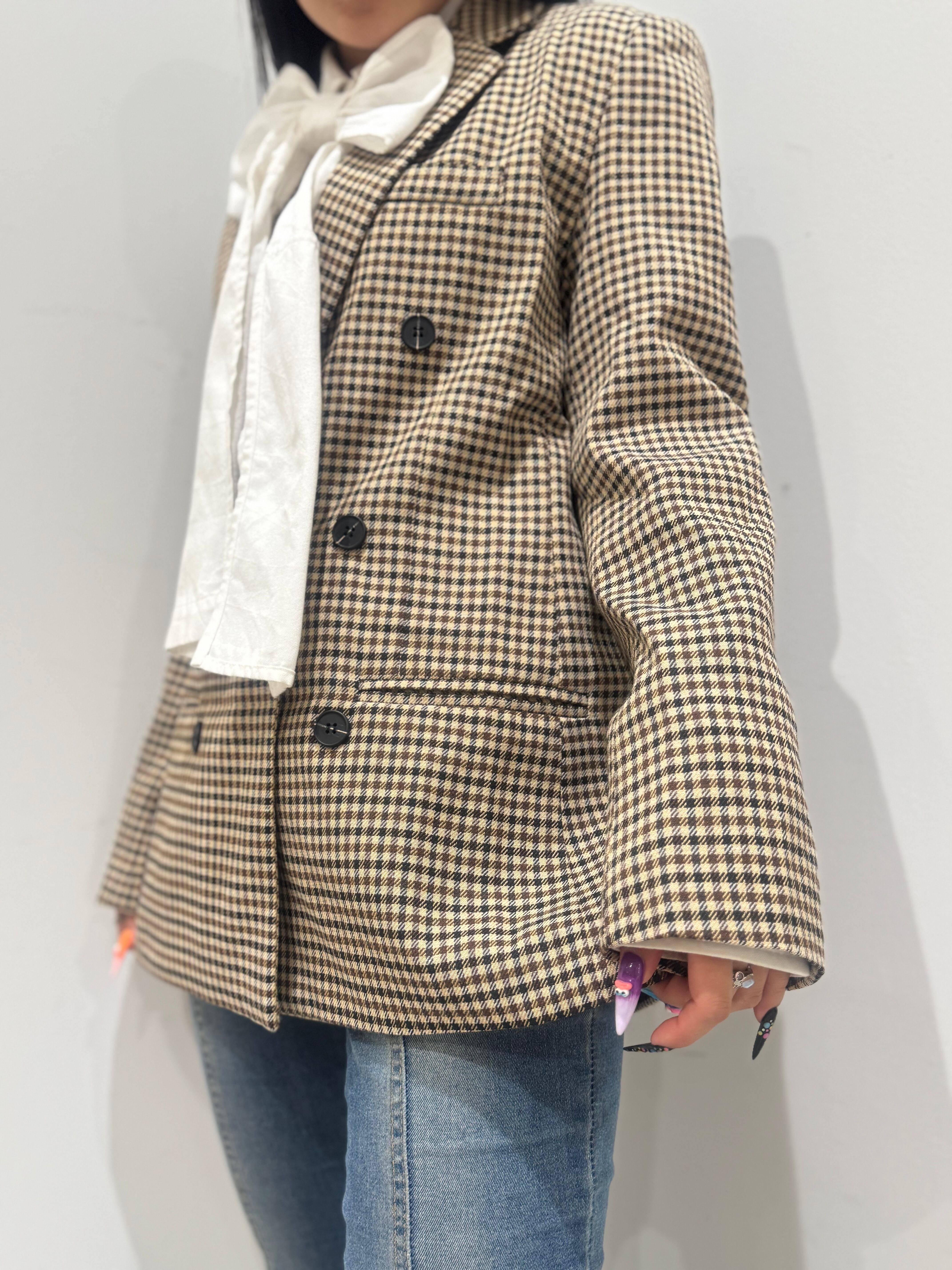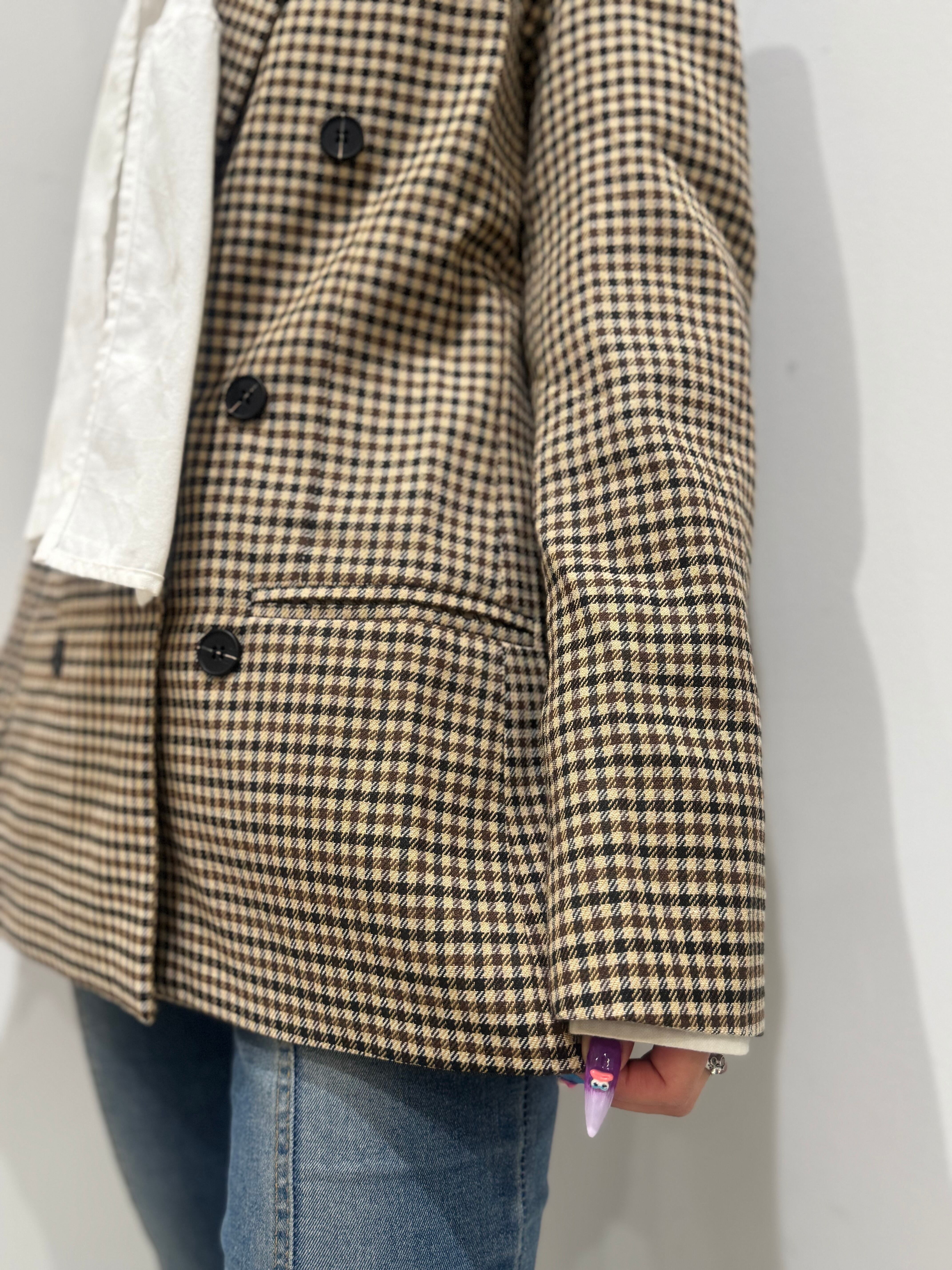 レトロチェックジャケット サイズ フリー 肩幅37 身幅46 着丈70 素材 ポリエステル100%