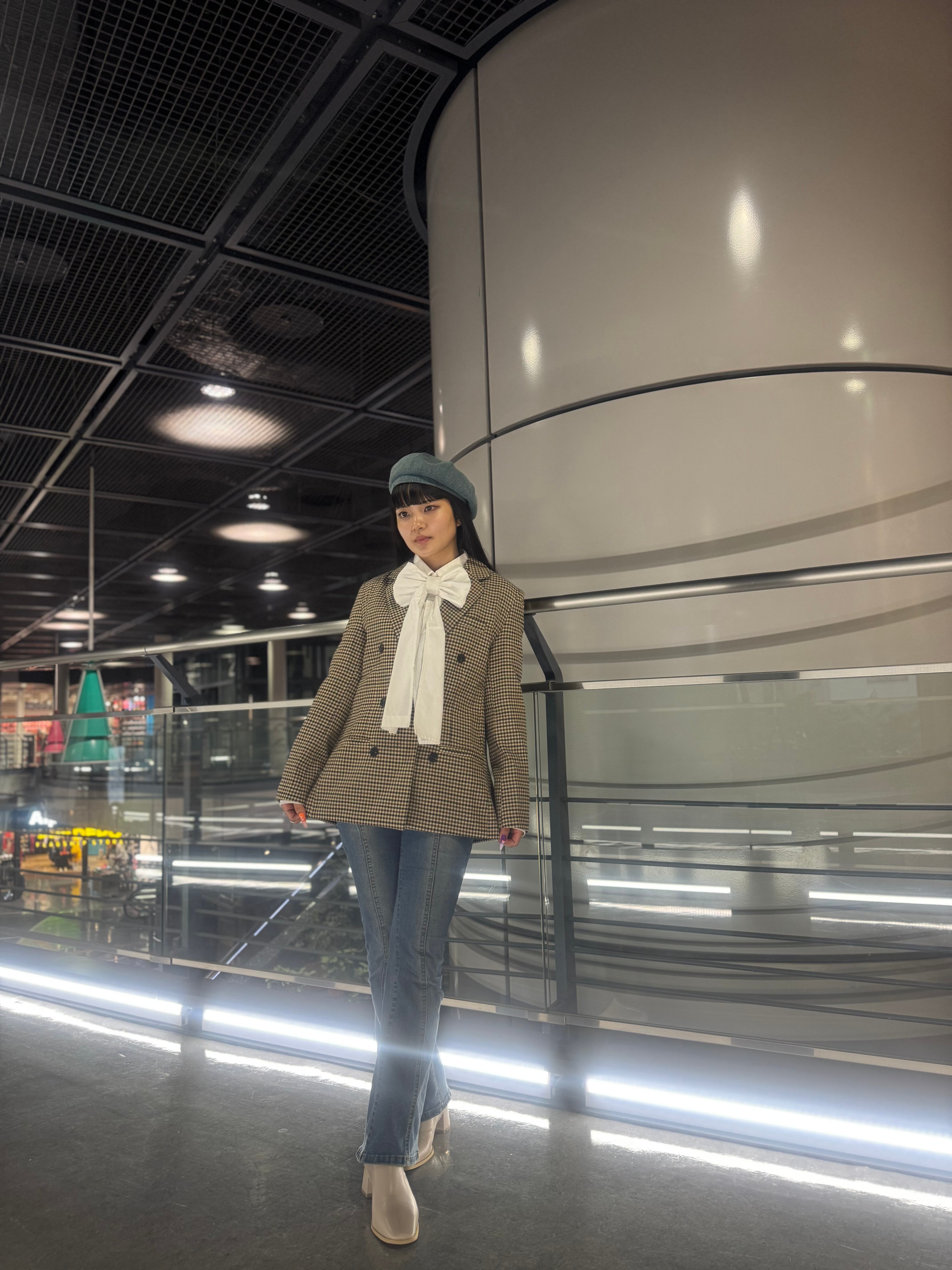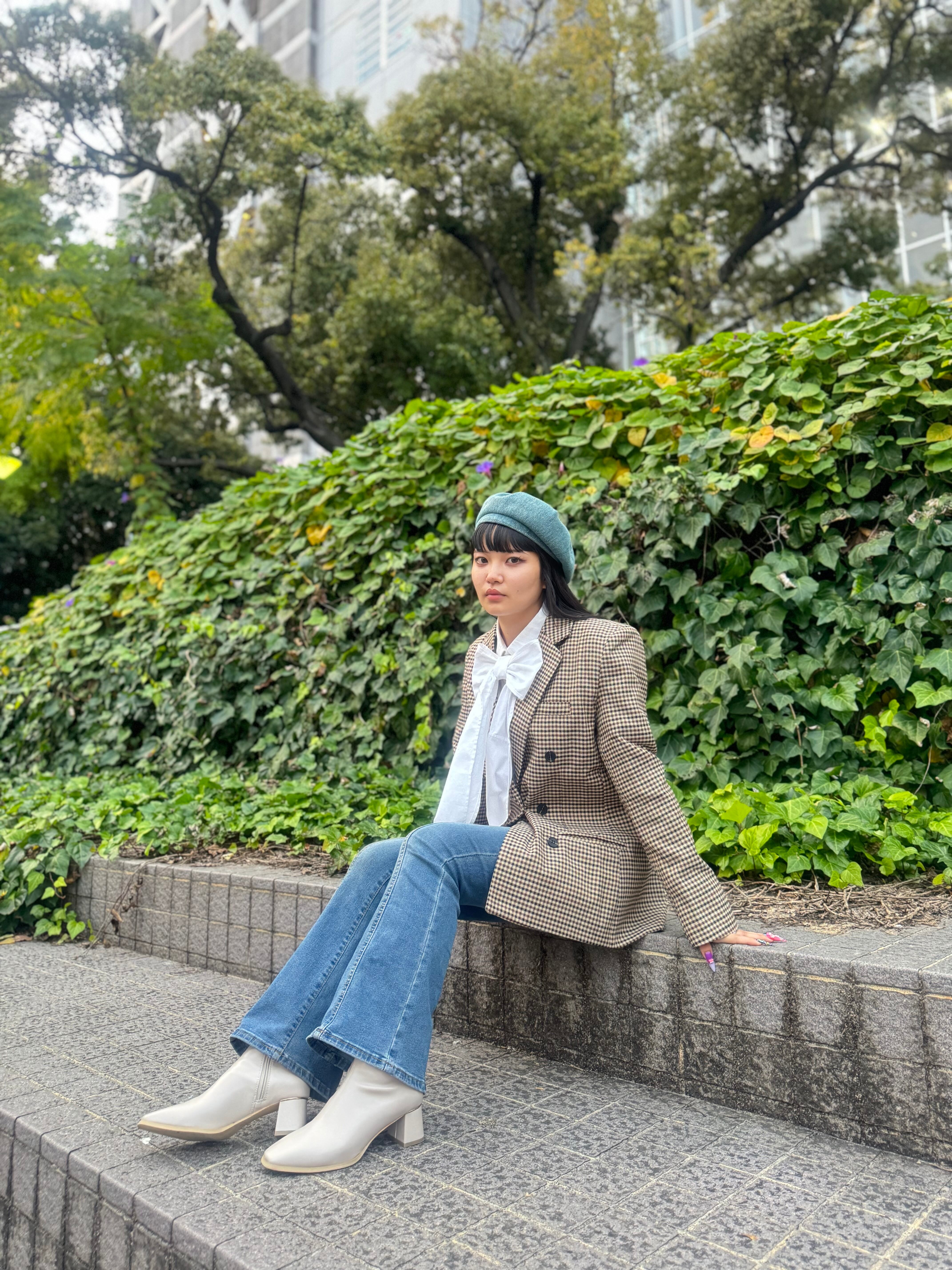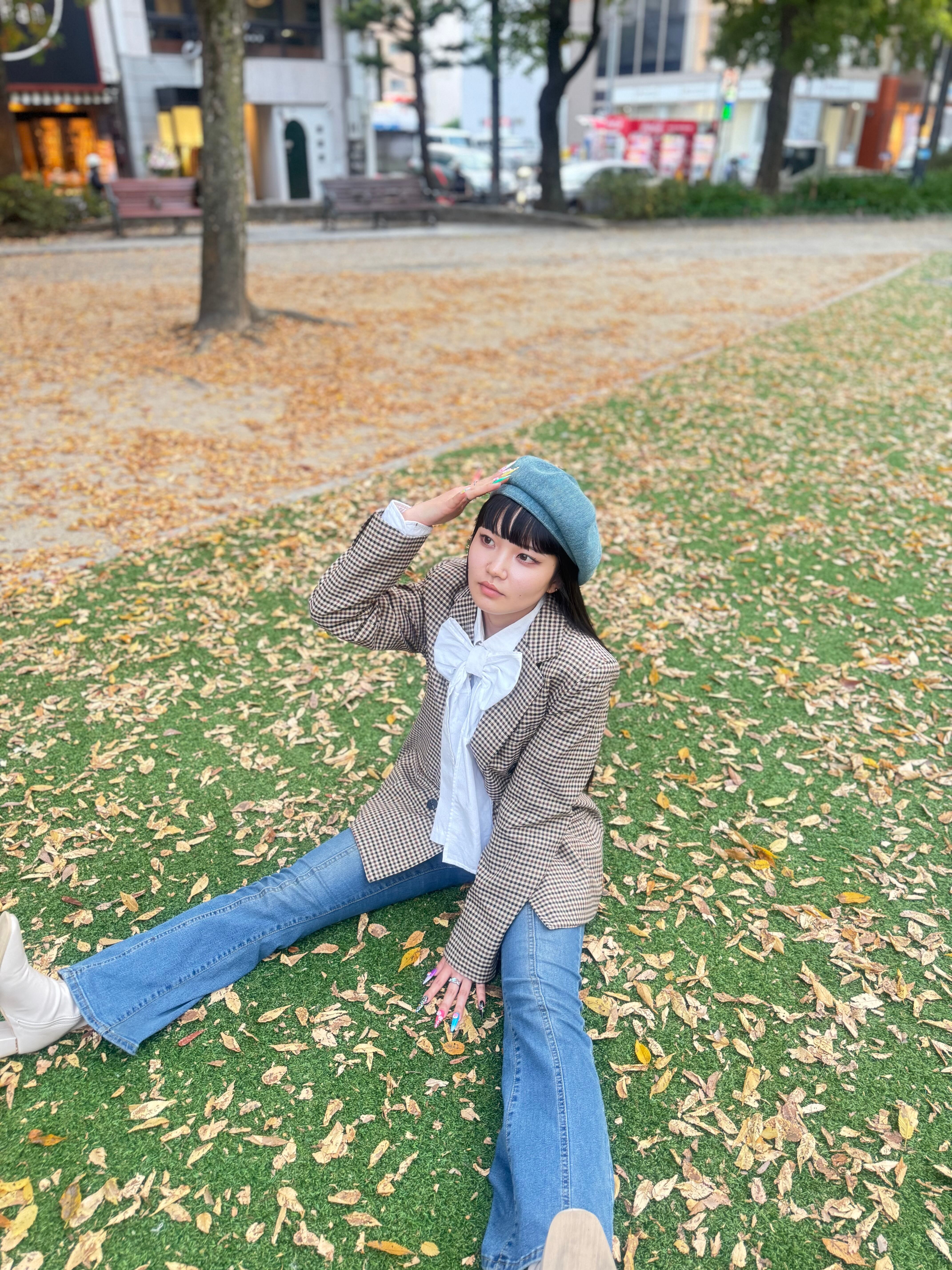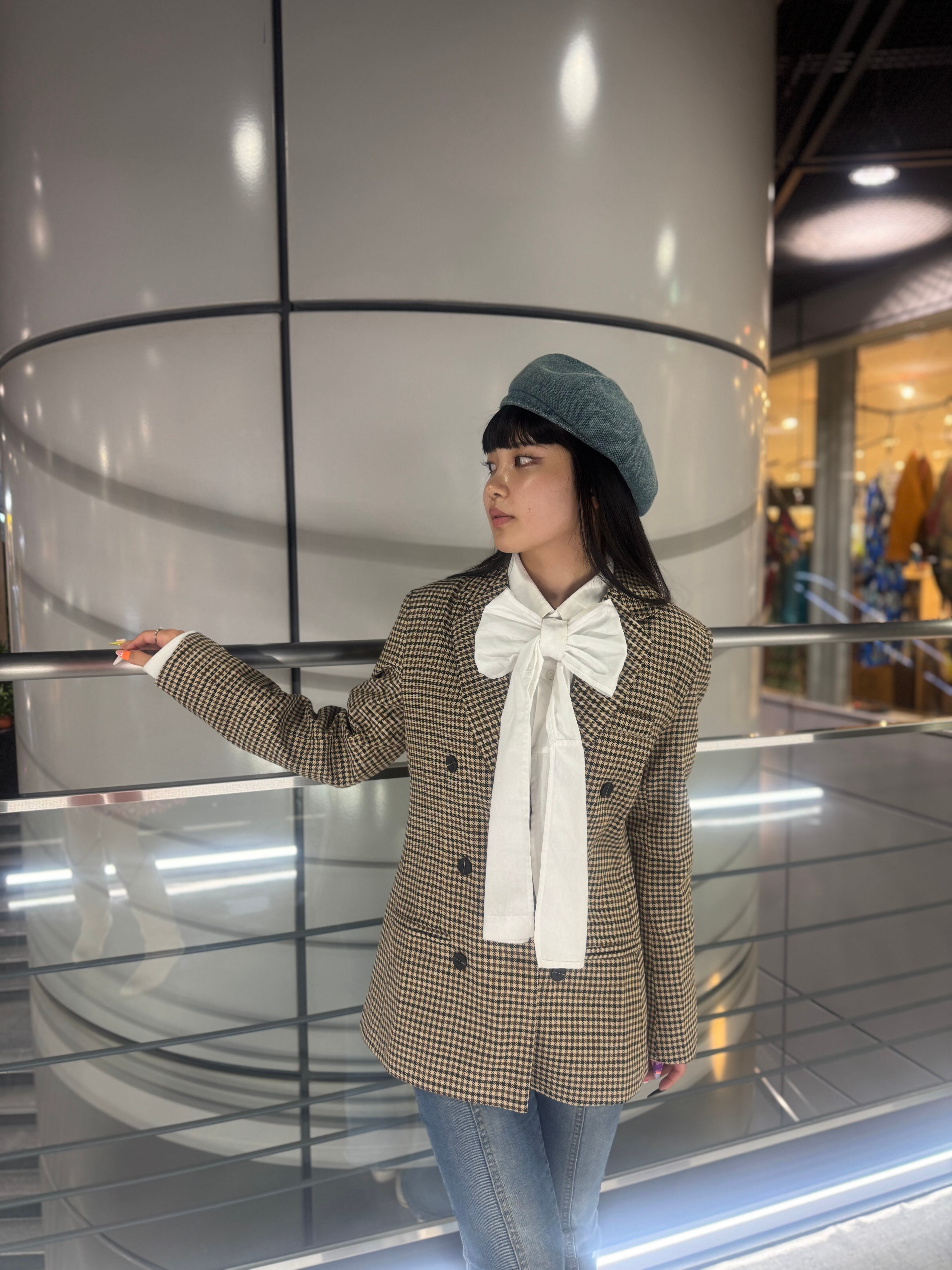 レトロチェックジャケット サイズ フリー 肩幅37 身幅46 着丈70 素材 ポリエステル100%