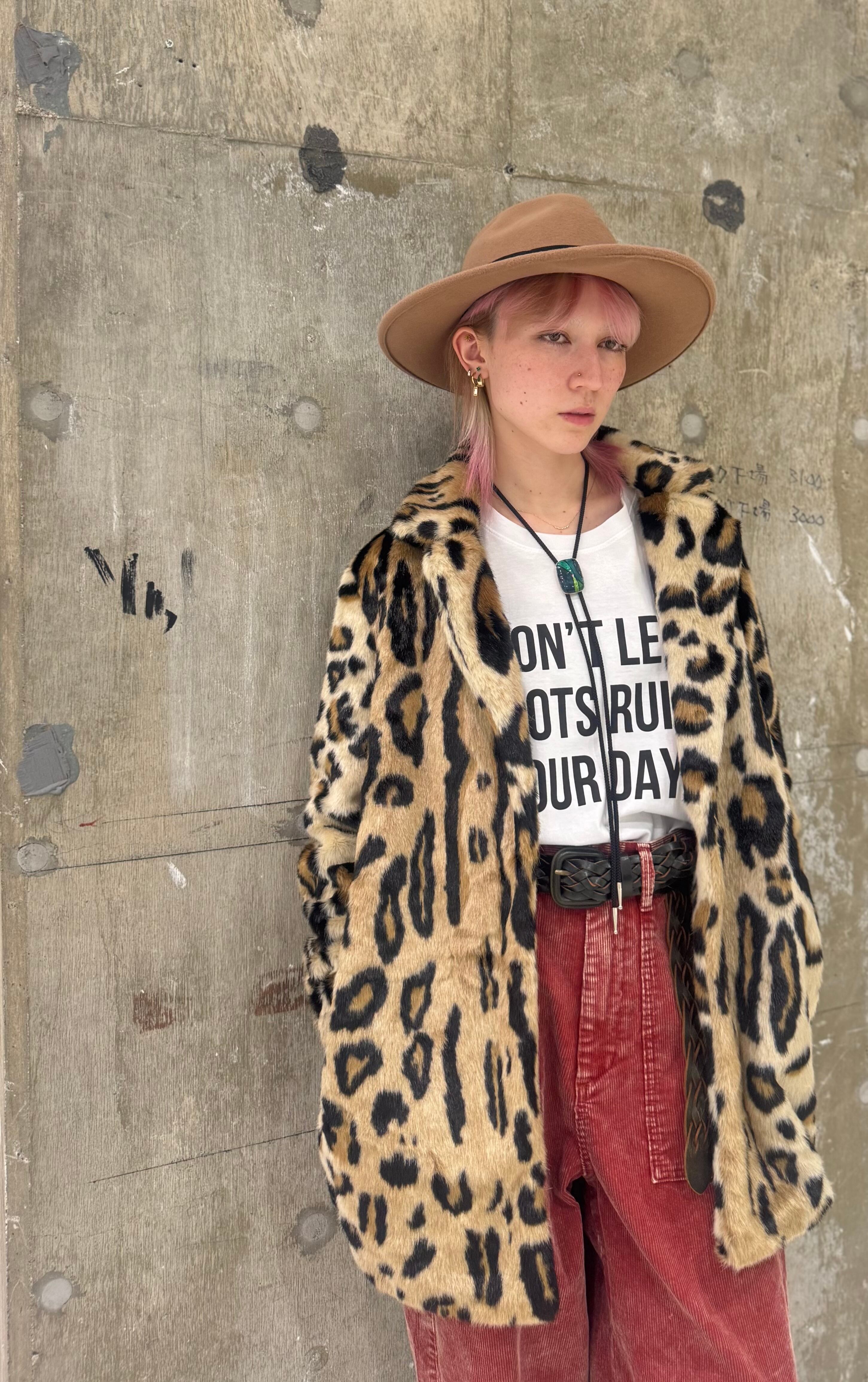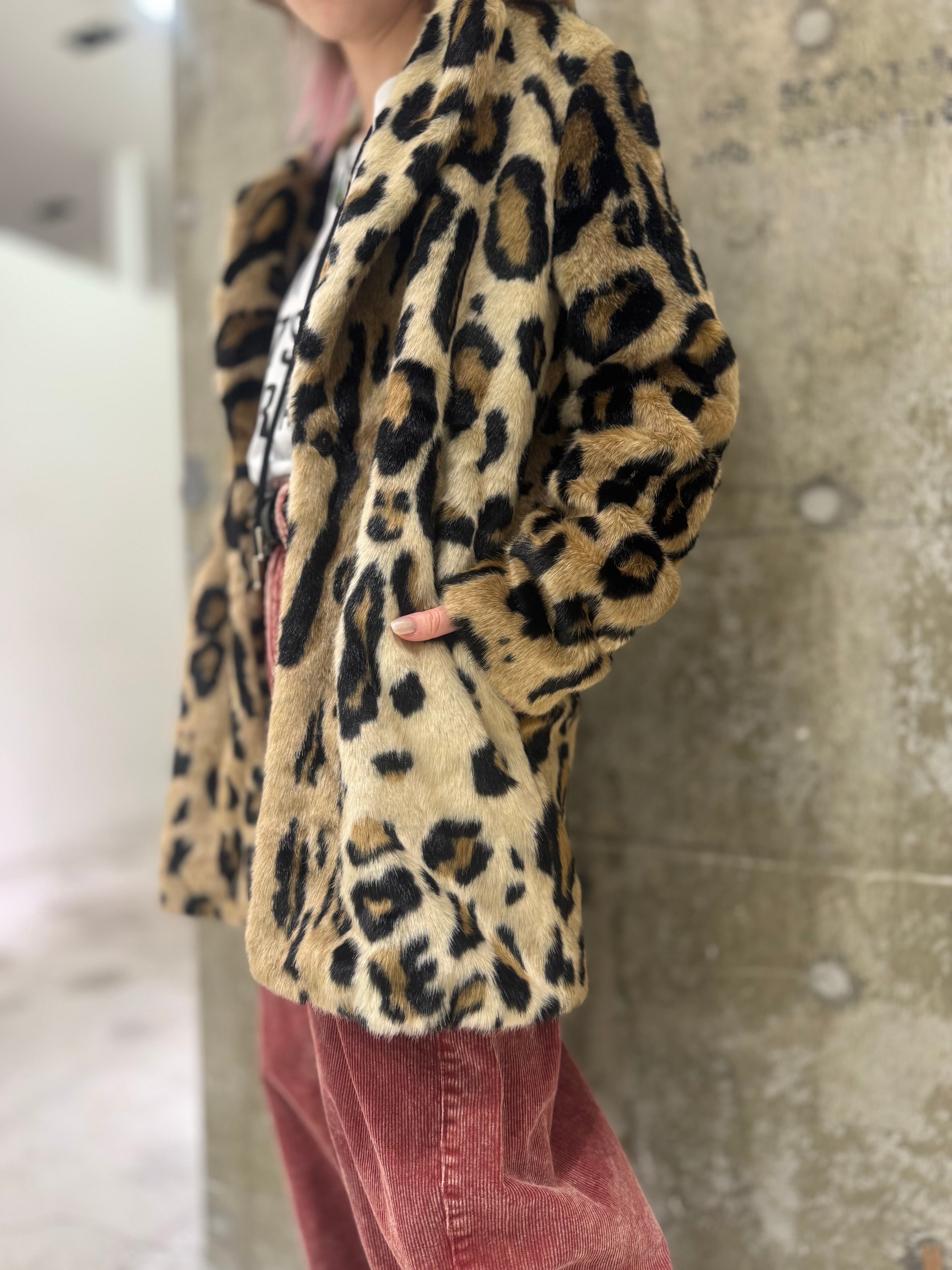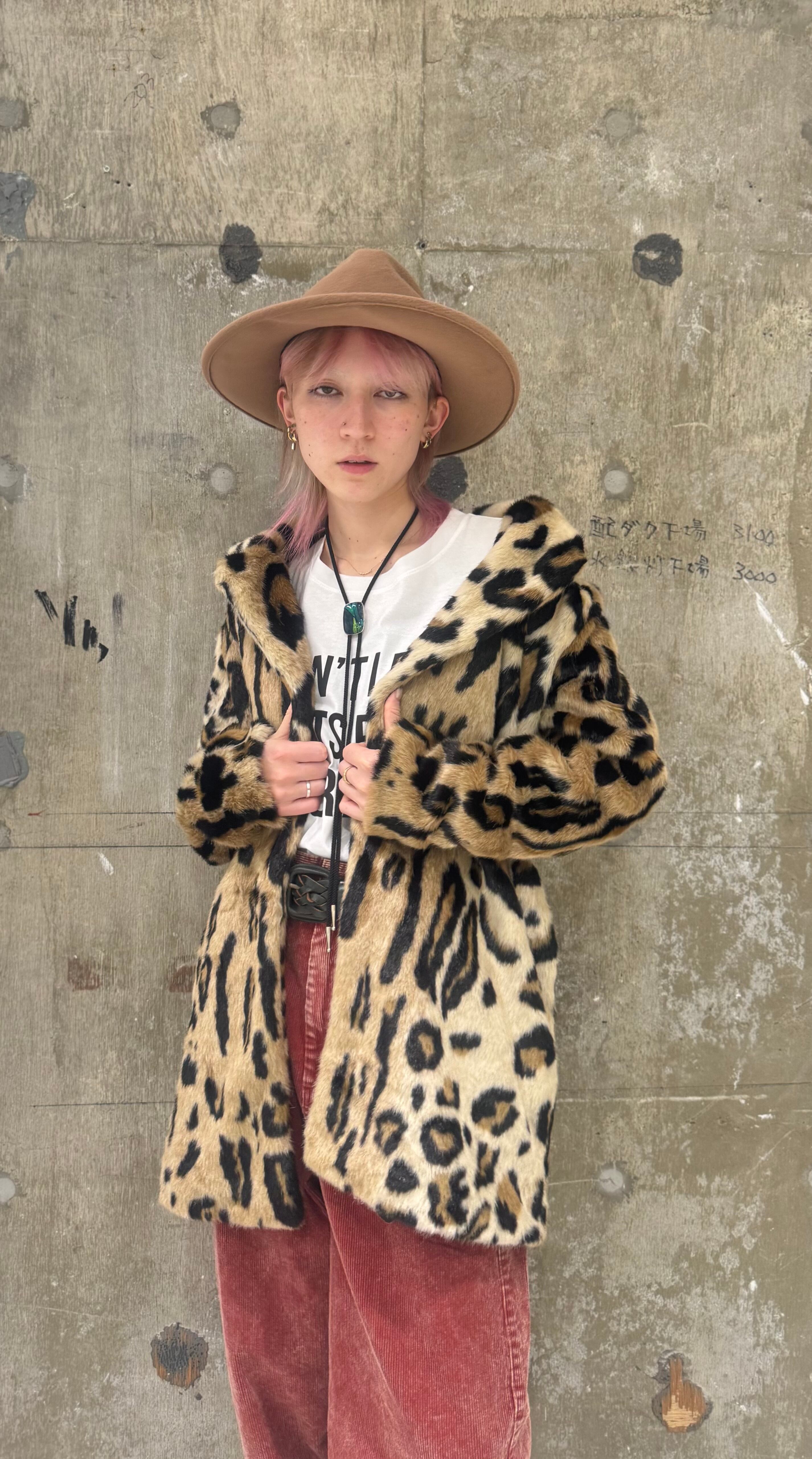 ヒョウ柄アウター サイズ フリー モデル身長159 肩幅39 身幅48 着丈82 素材 ポリエステル100%