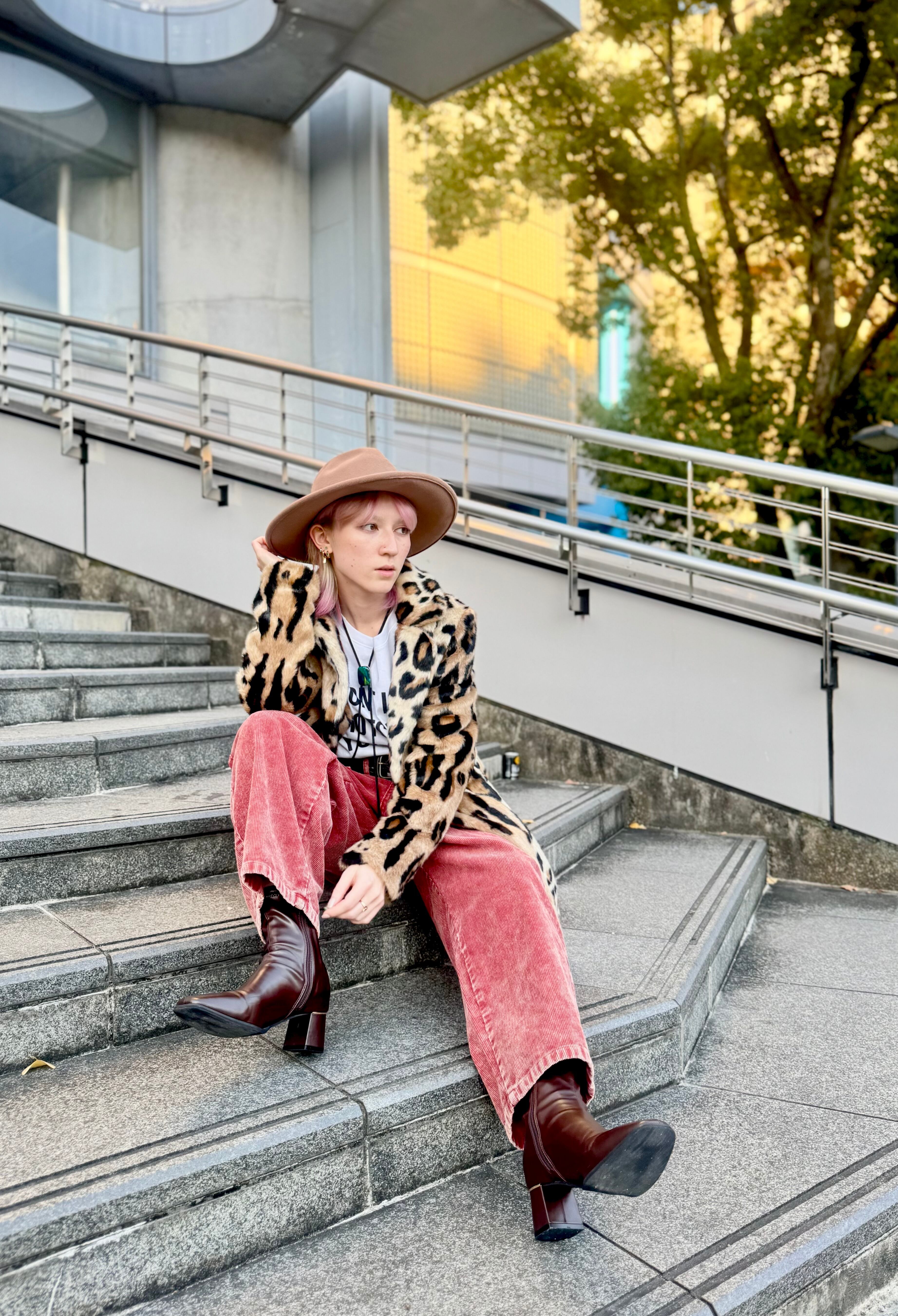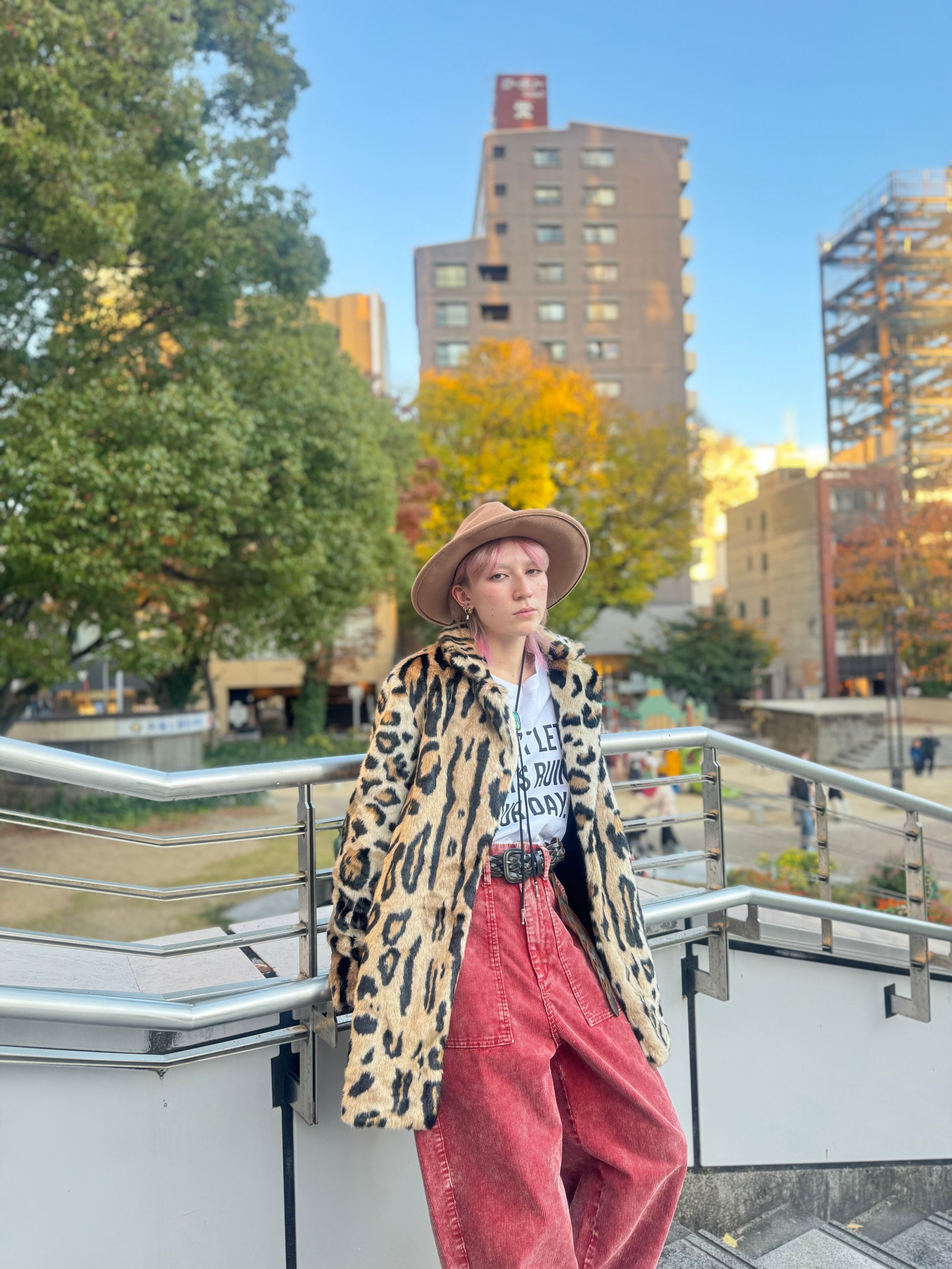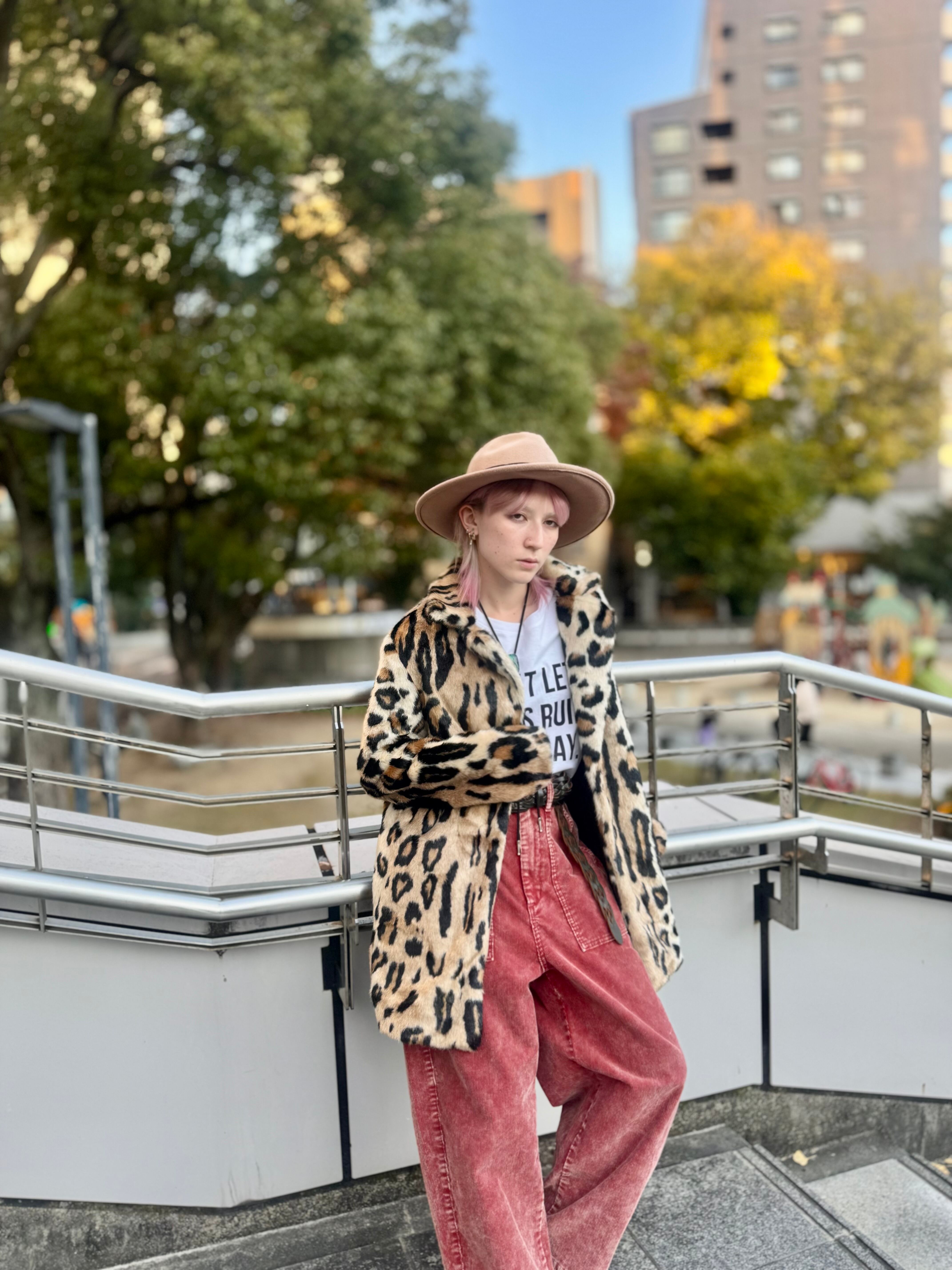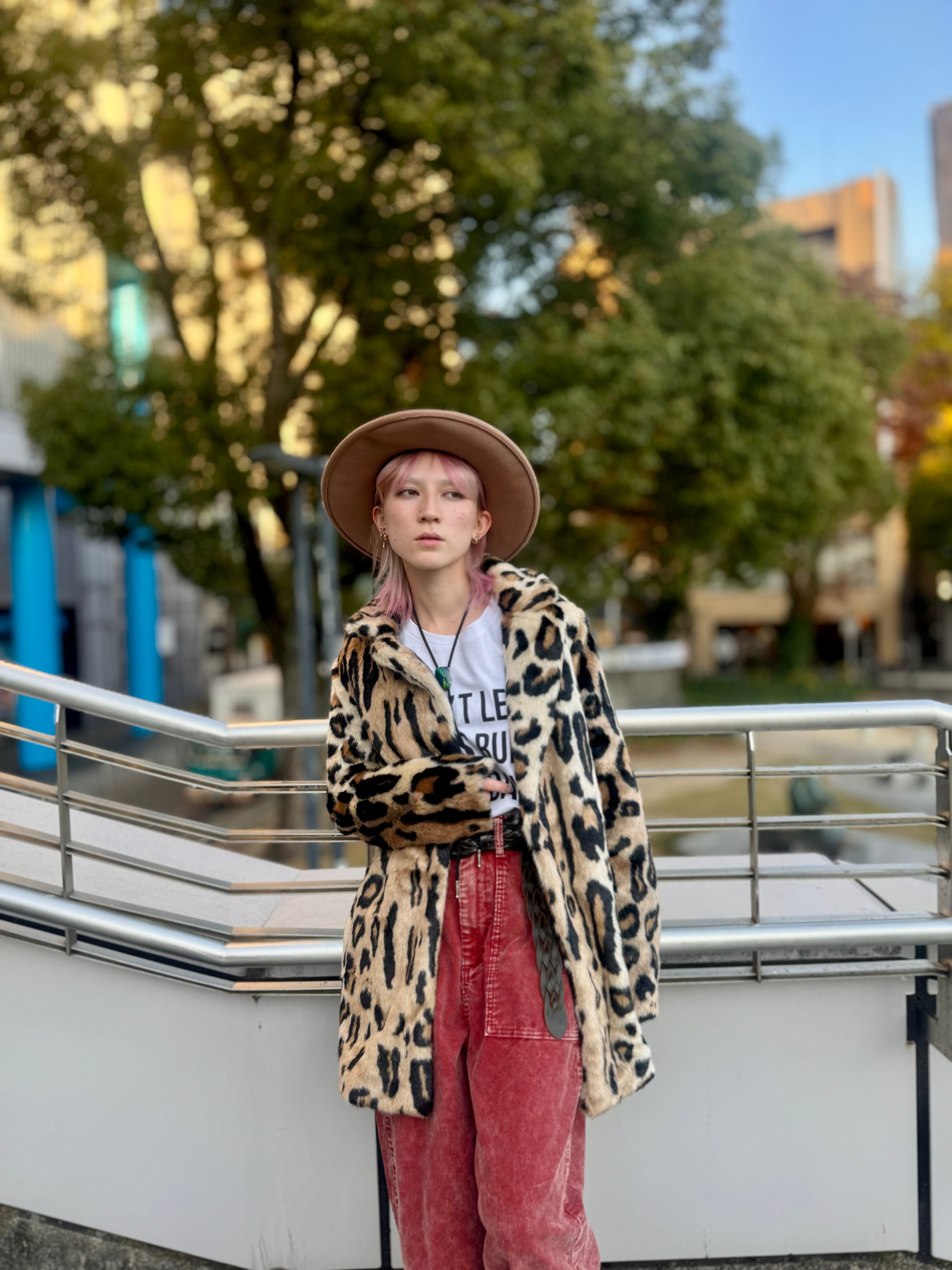 ヒョウ柄アウター サイズ フリー モデル身長159 肩幅39 身幅48 着丈82 素材 ポリエステル100%