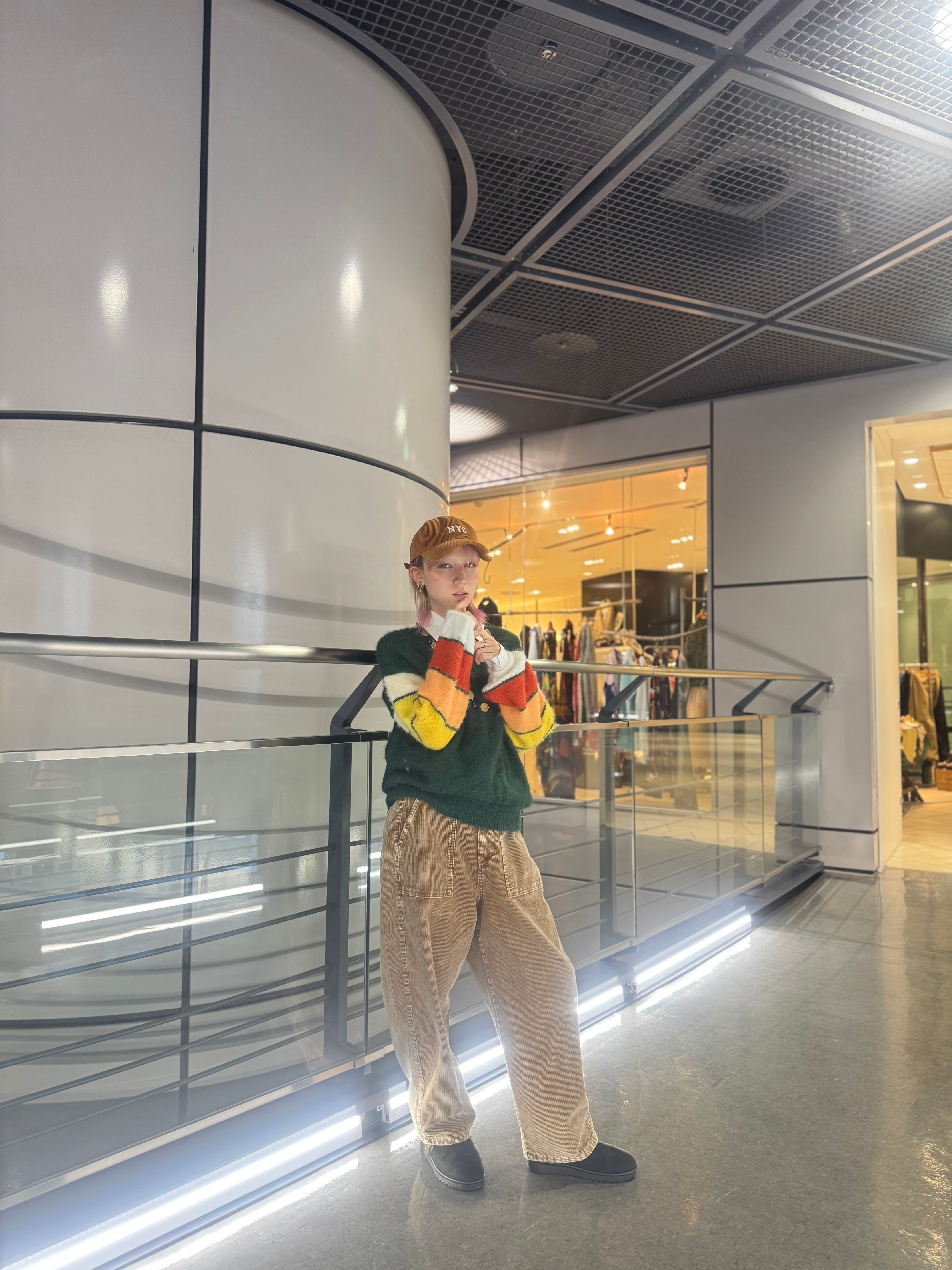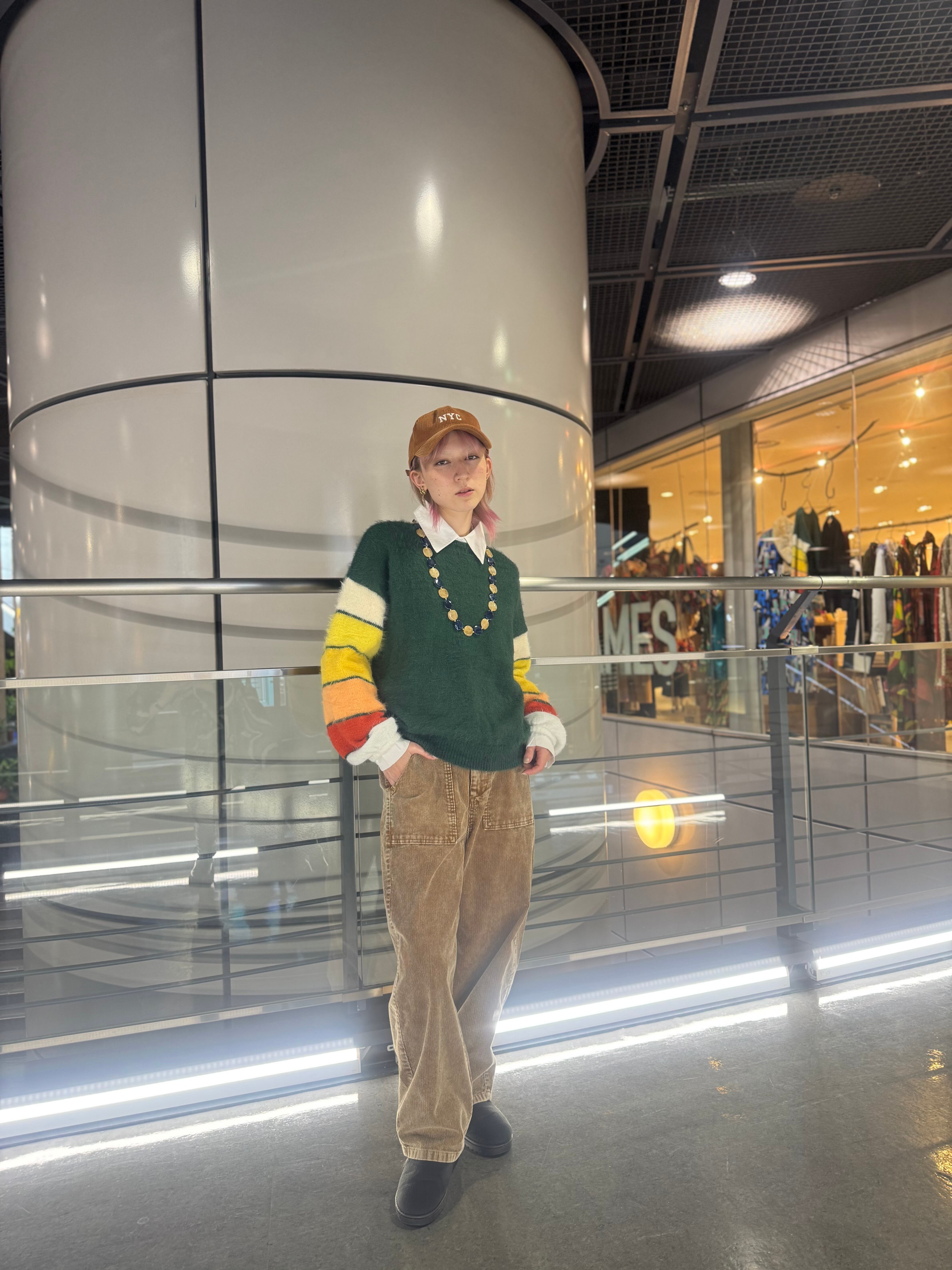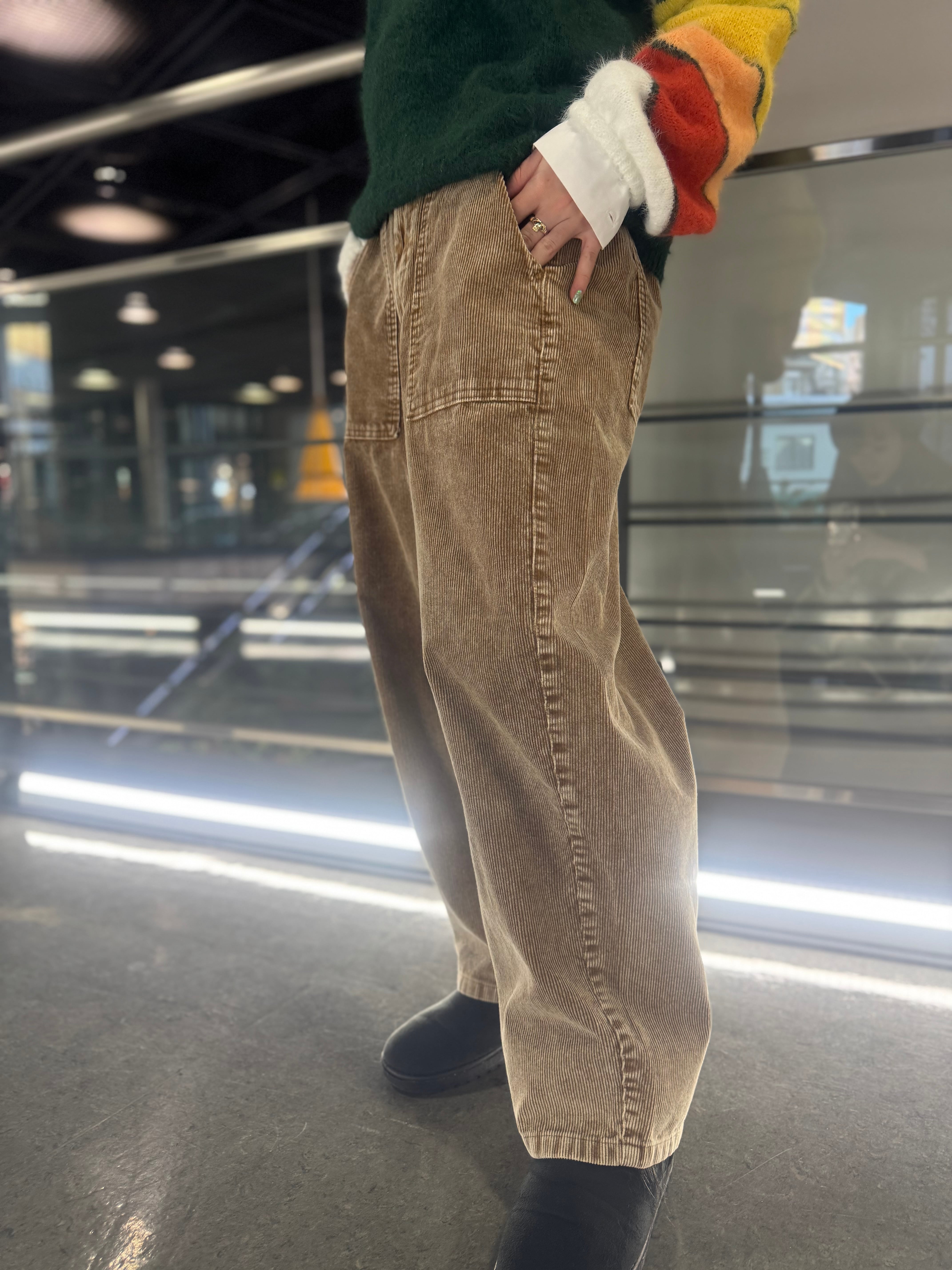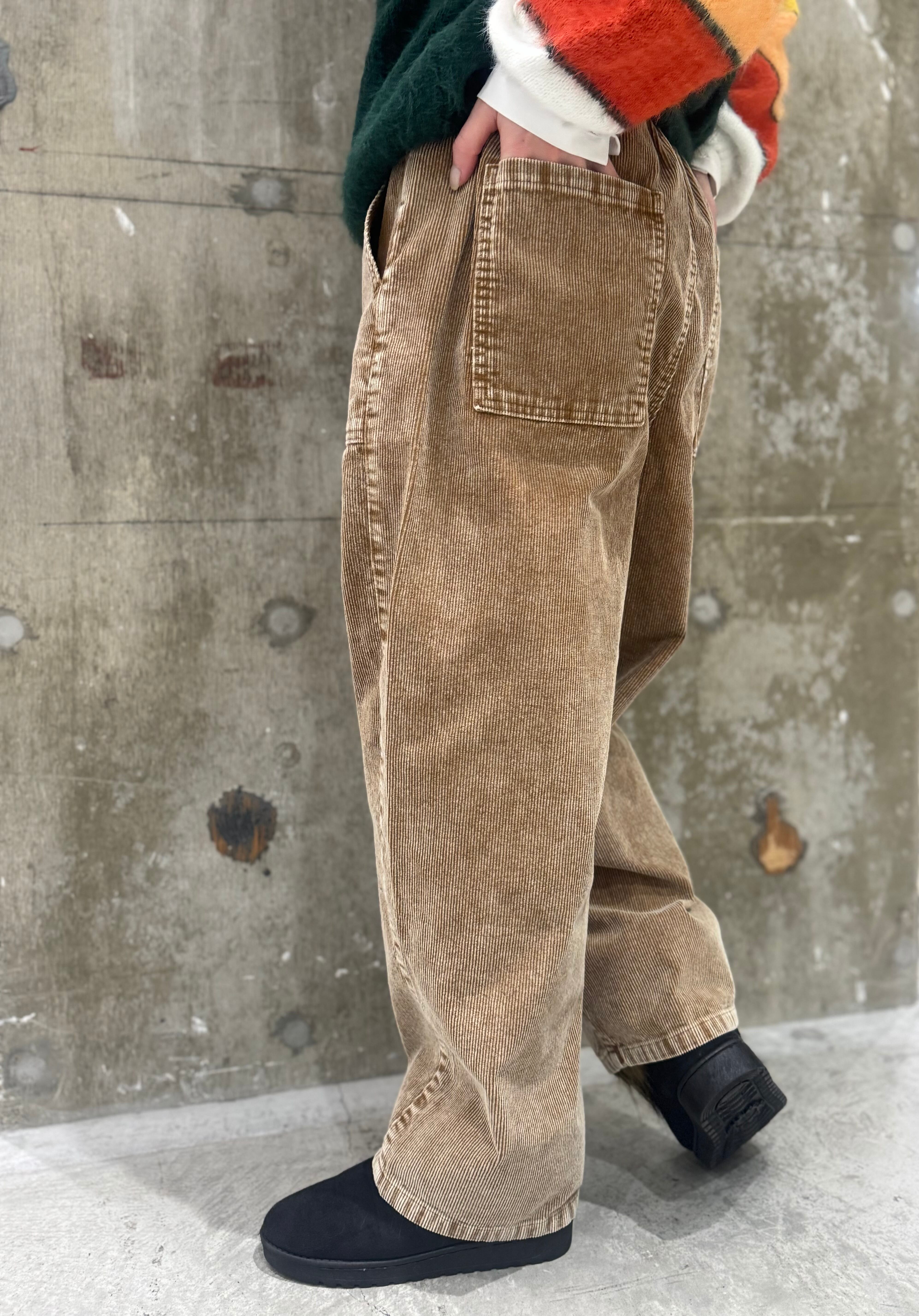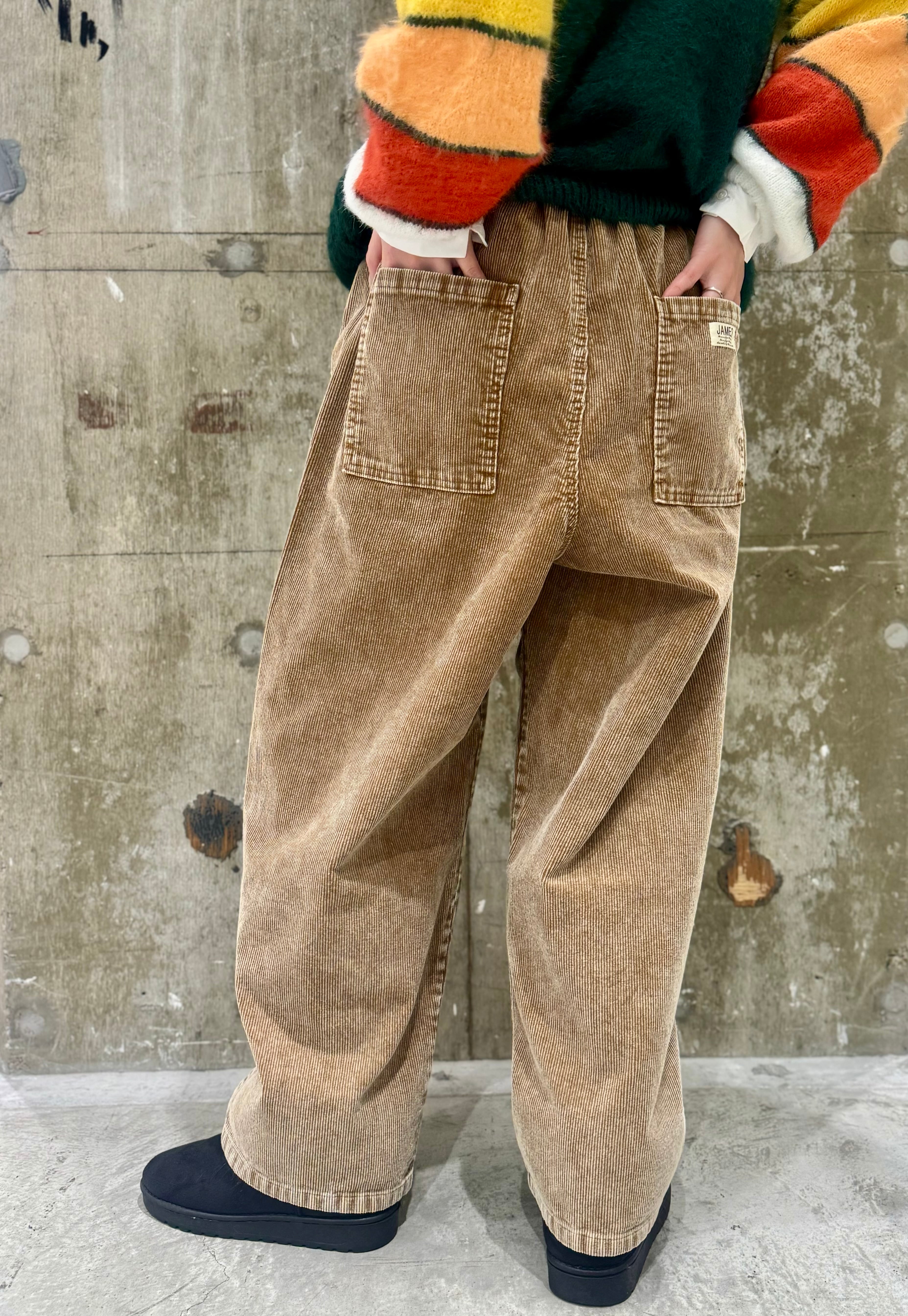 2カラー ベージュ/ネイビー モデル着用 ベージュ モデル身長159 サイズ フリー ウエスト後ろゴム ウエスト60〜70 股上37 着丈94 素材 綿 100%