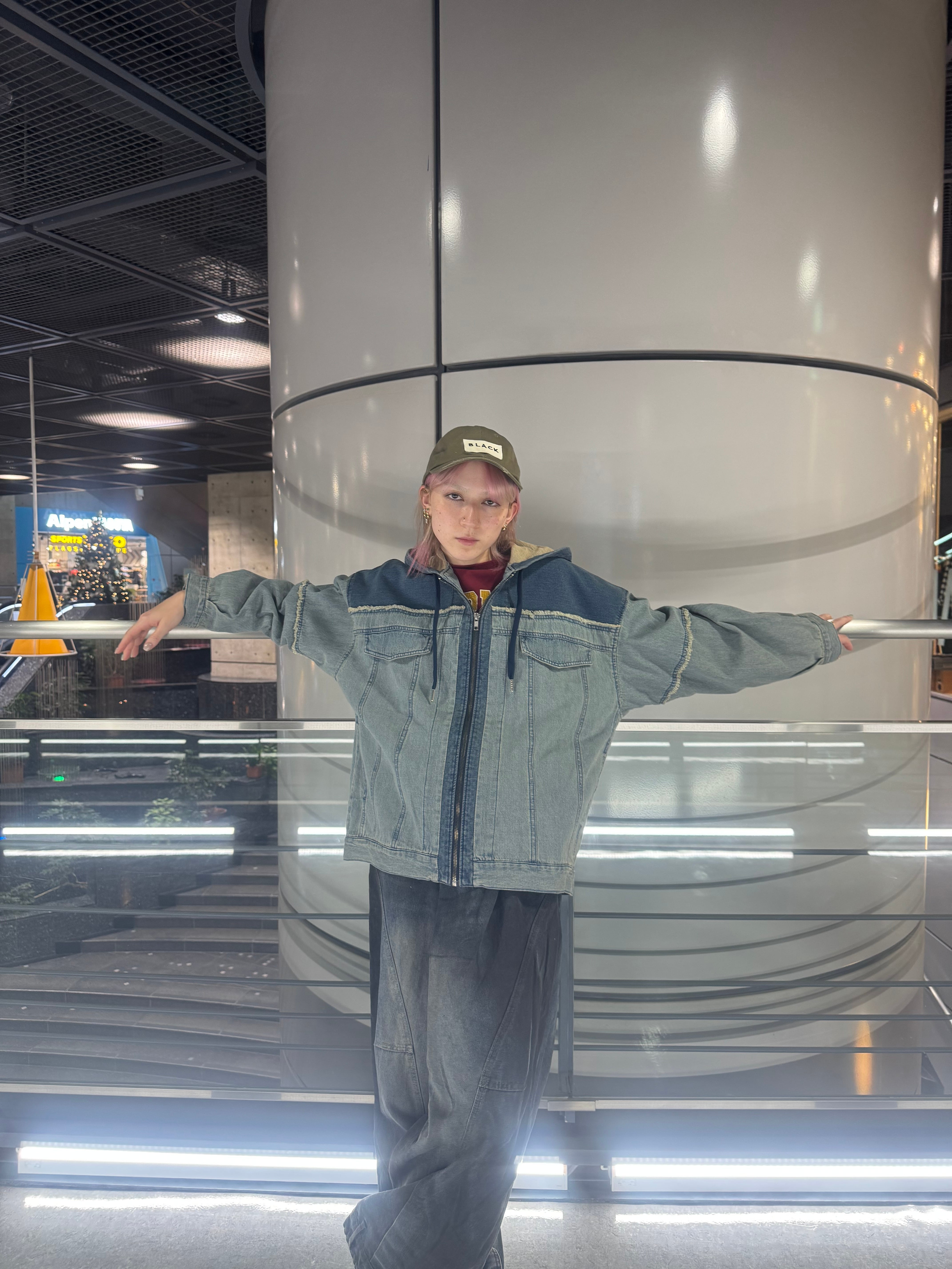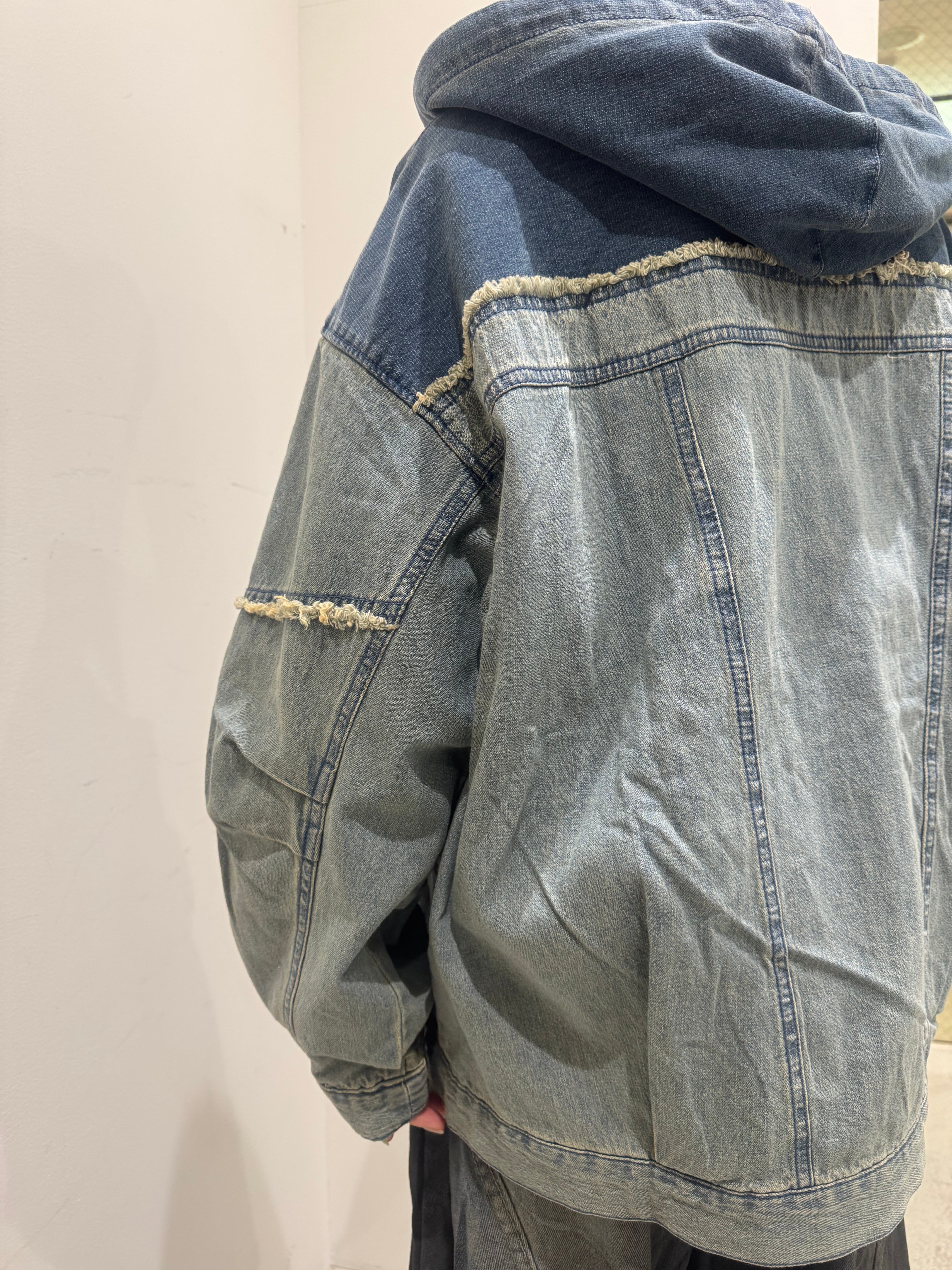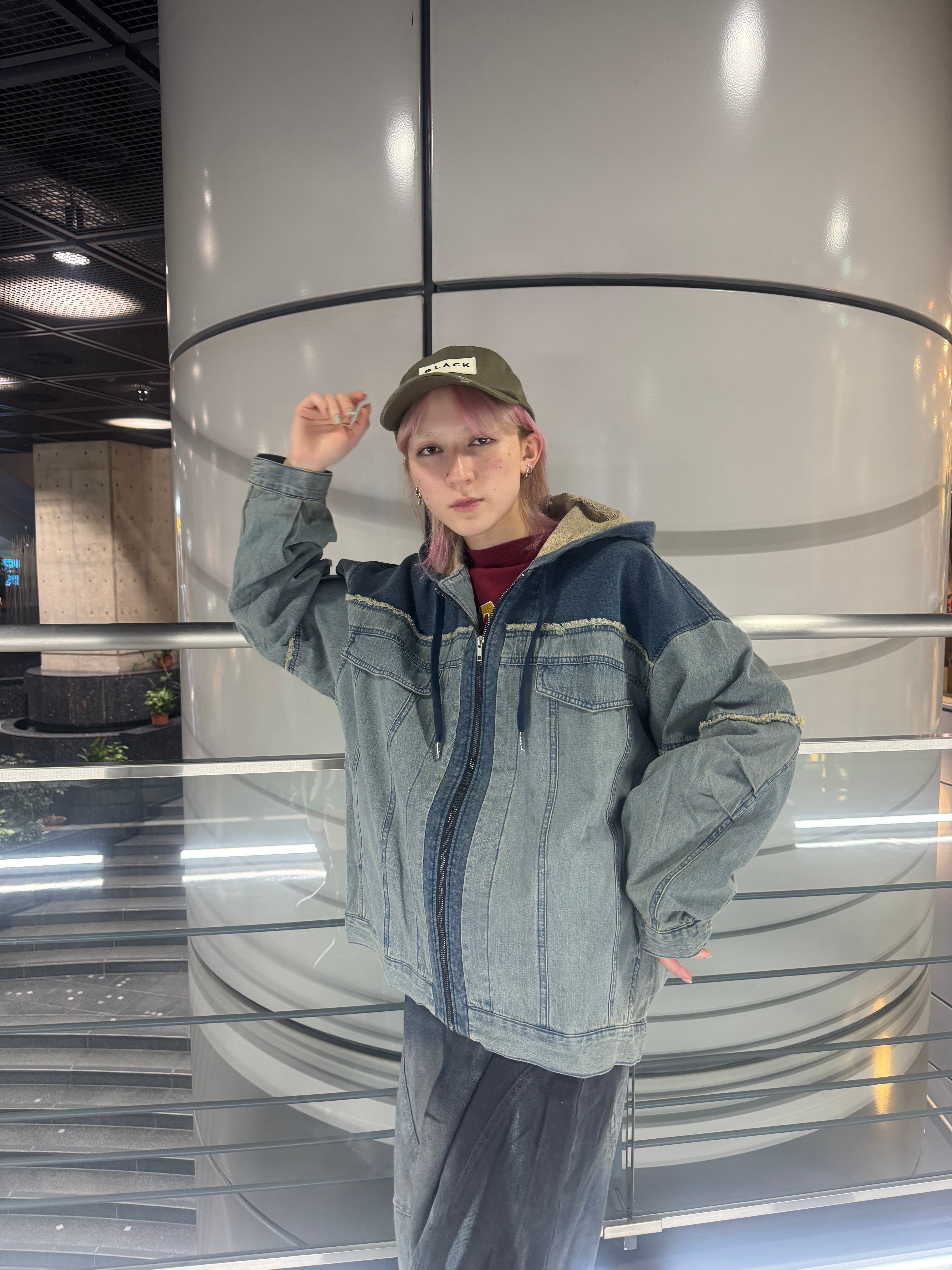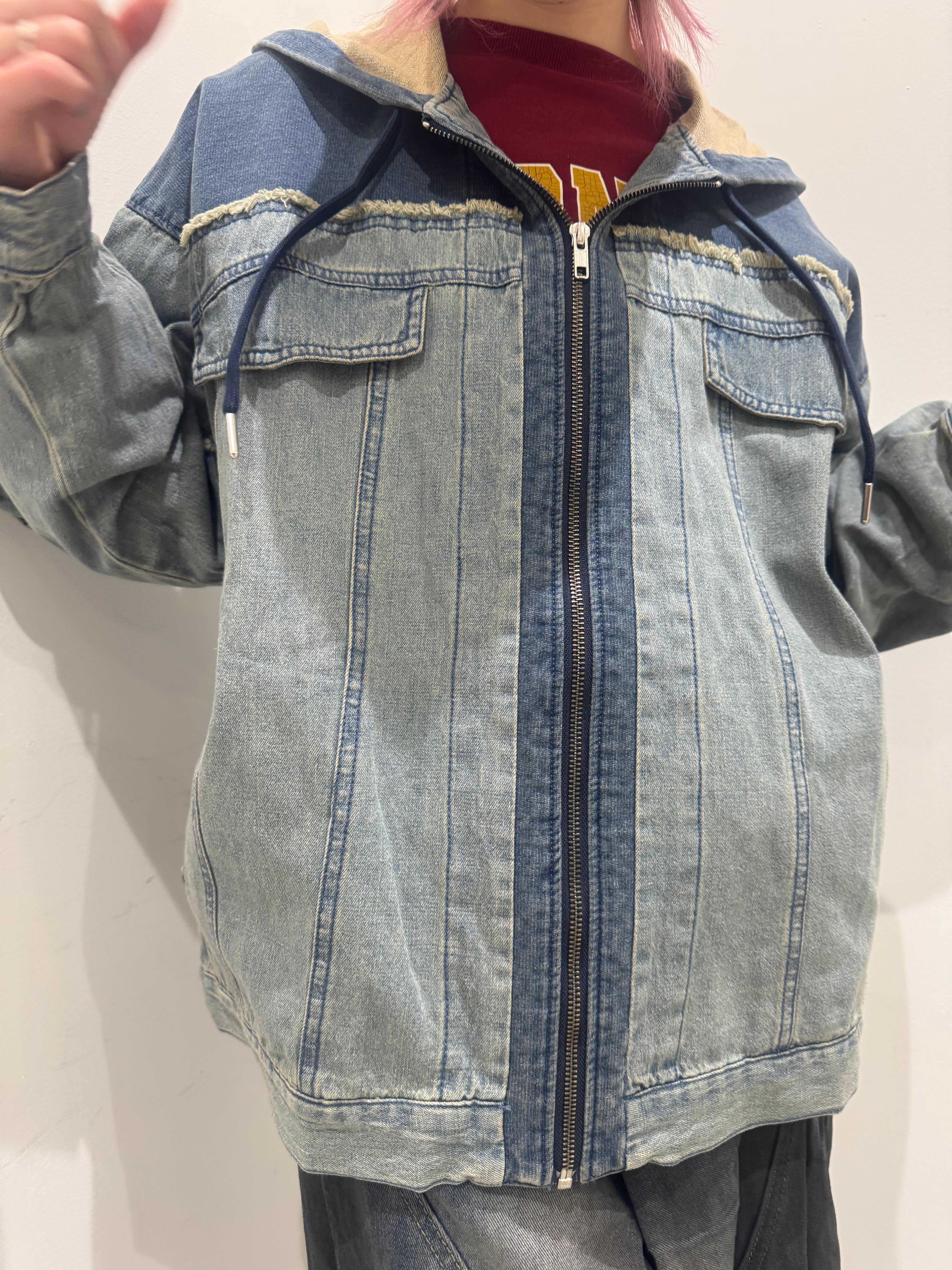 デニムジップパーカー サイズ フリー モデル身長159 肩幅59 身幅63 着丈63 素材 本体 綿100% 別布 綿98% ポリウレタン2%