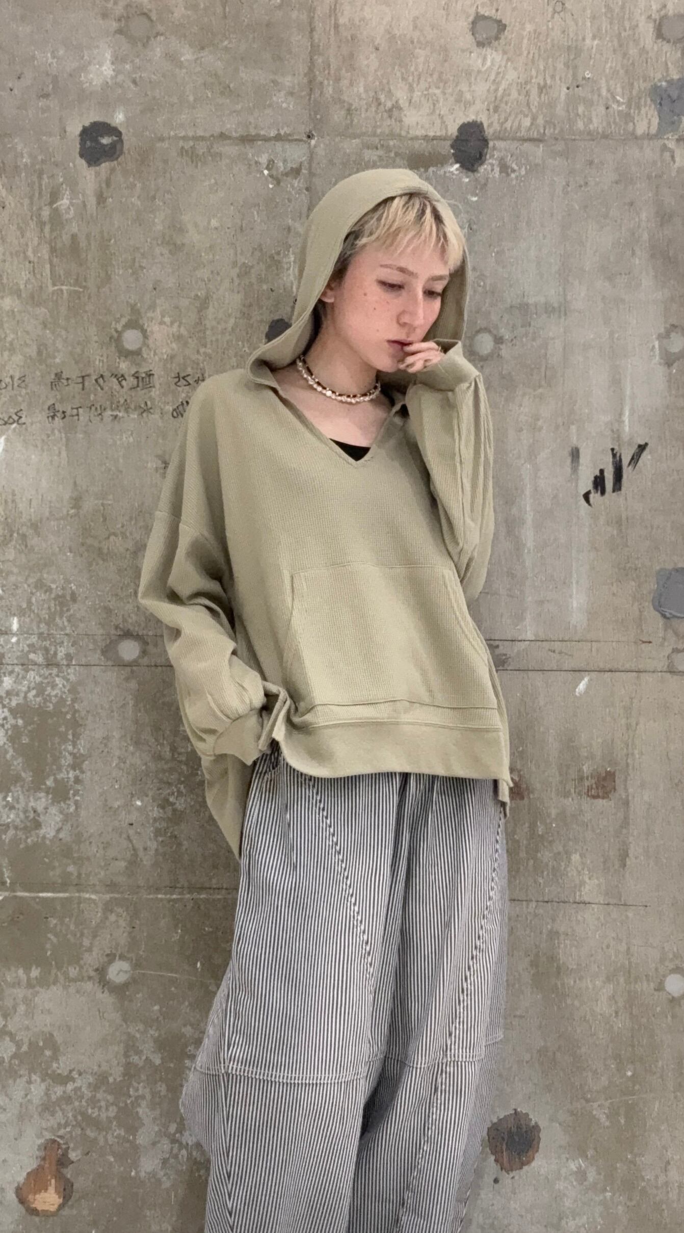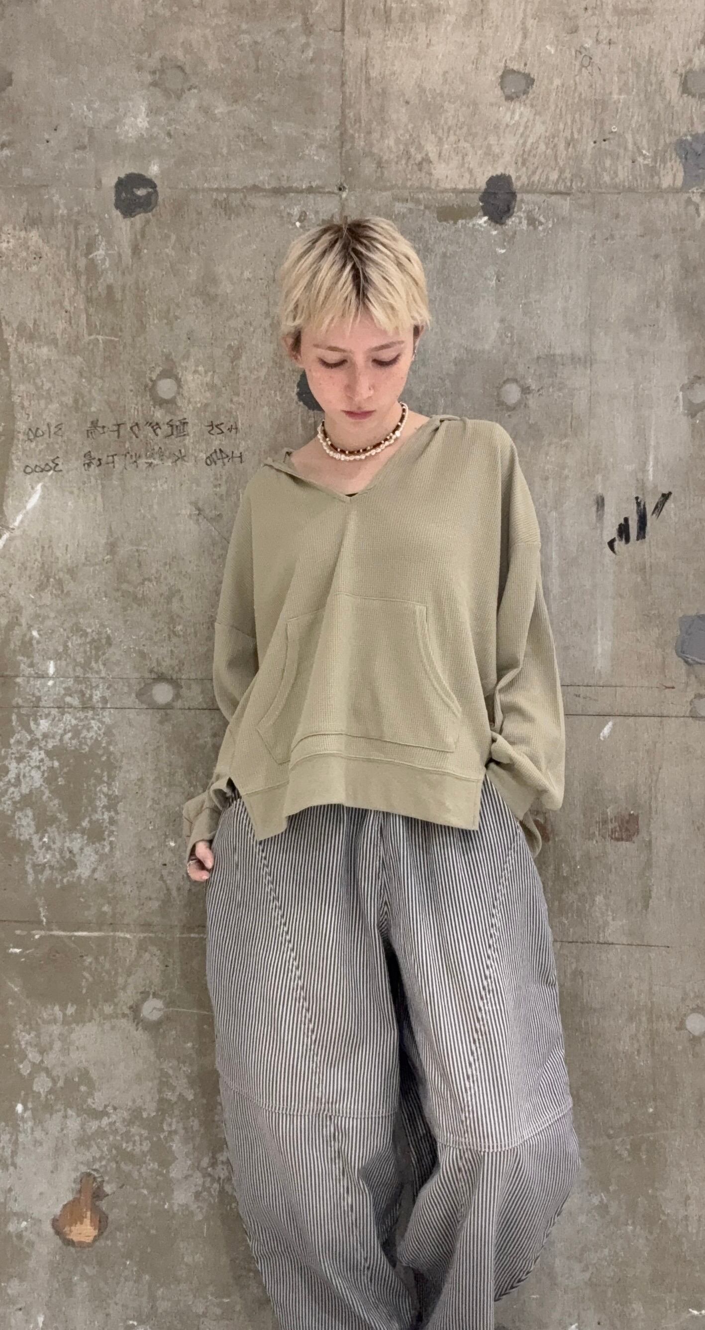 【ワッフルVネックオーバーサイズプルパーカー】