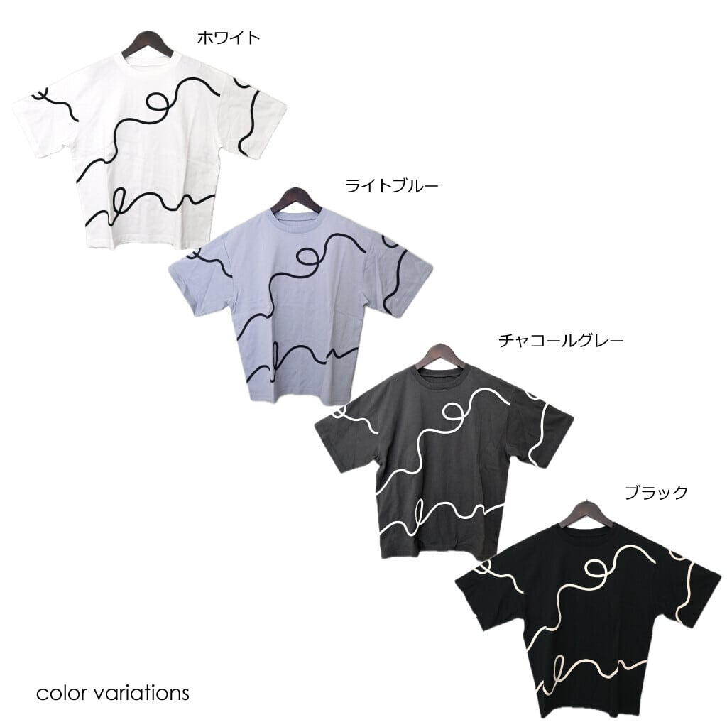 黒地に白のロープ刺繍Tシャツ