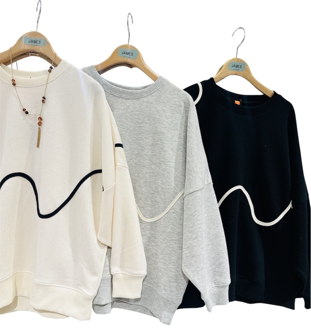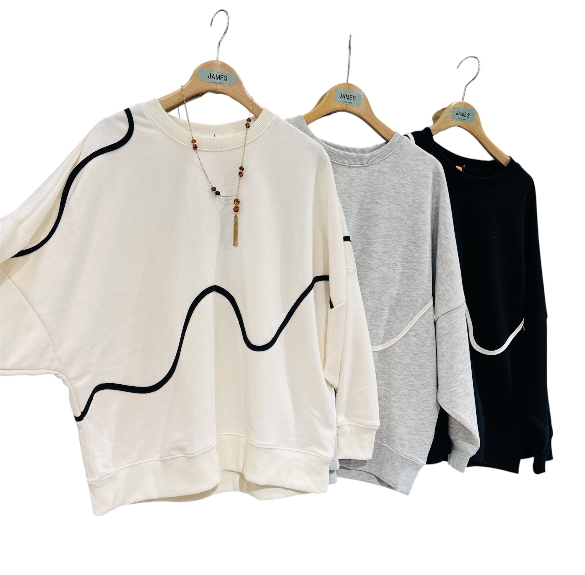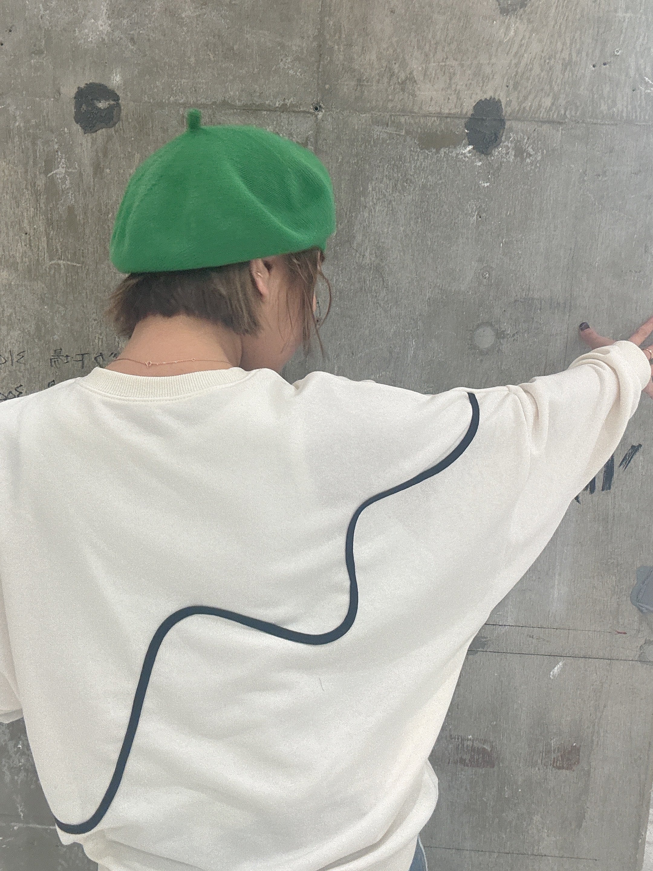 ゆったりとしたドルマンシルエットが、肩や腕まわりに自然な余裕を持たせ、体のラインを拾いにくいリラクシーな着用感を実現。身頃に施した配色のニュアンスラインが、シンプルなデザインにさりげないアクセントをプラスし、コーディネートに表情を与えます。袖口と裾はリブ仕様で、ゆったり感の中にも程よいメリハリをプラス。