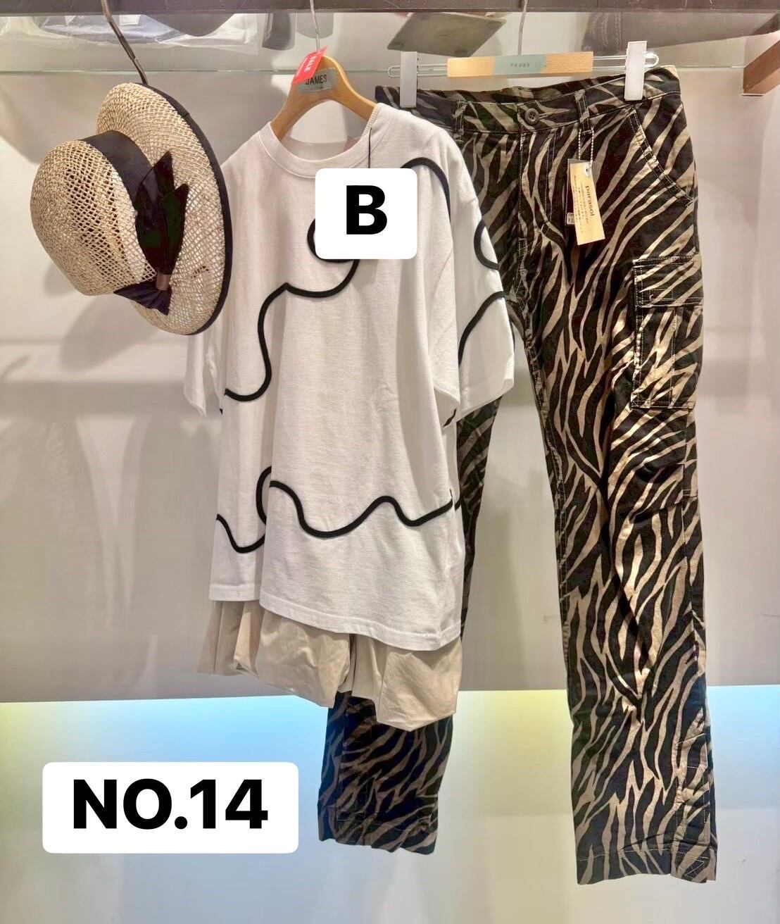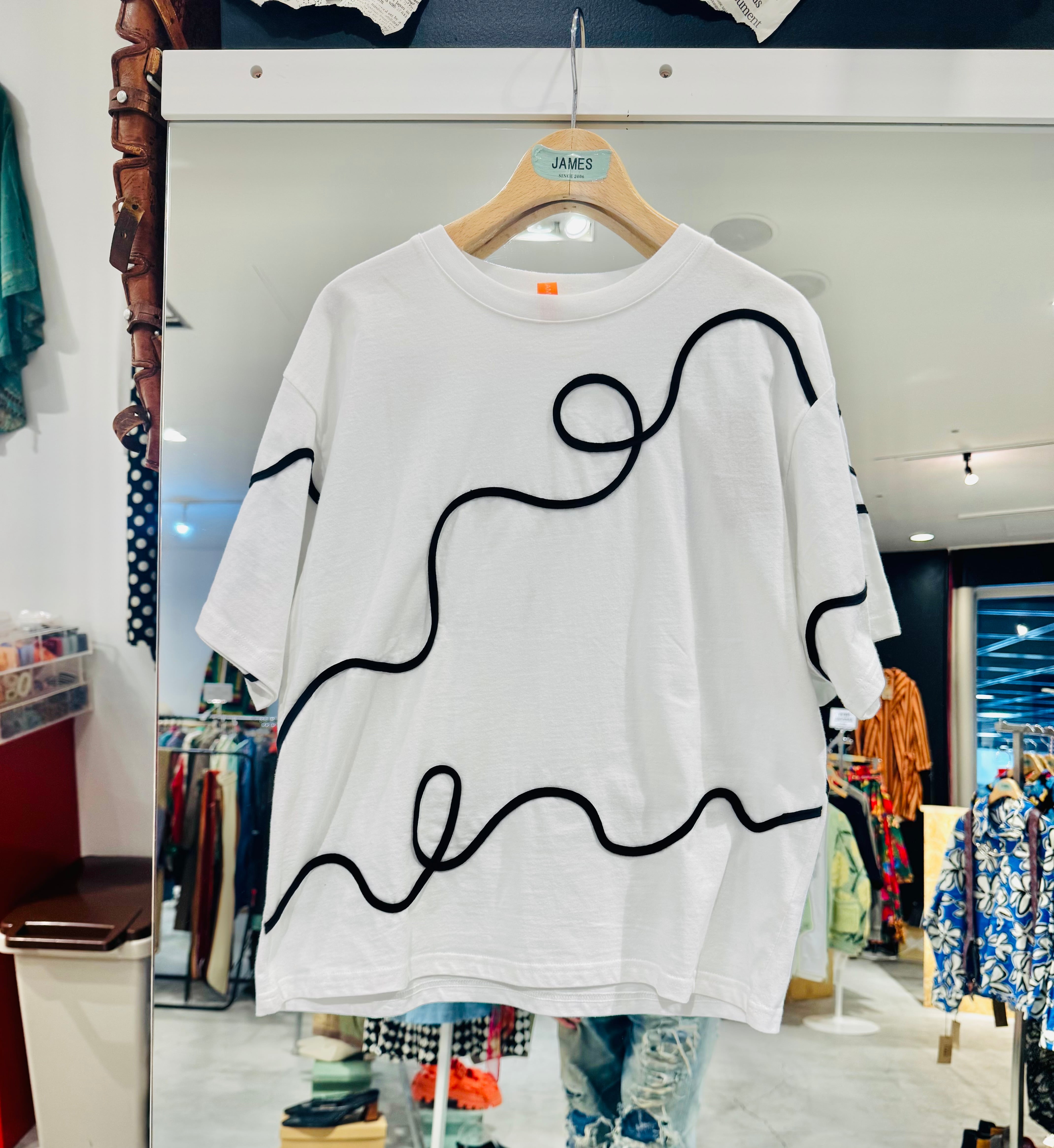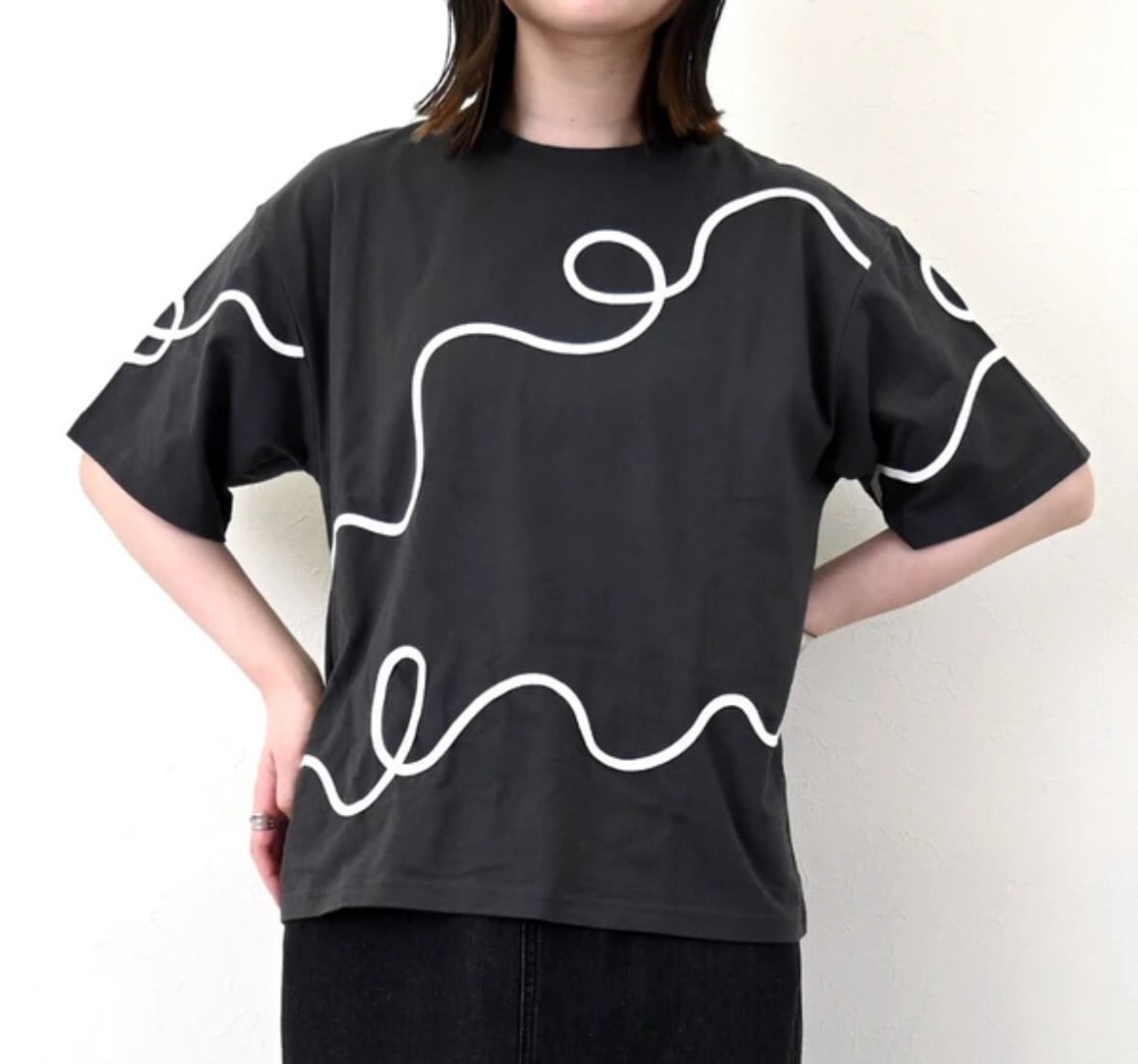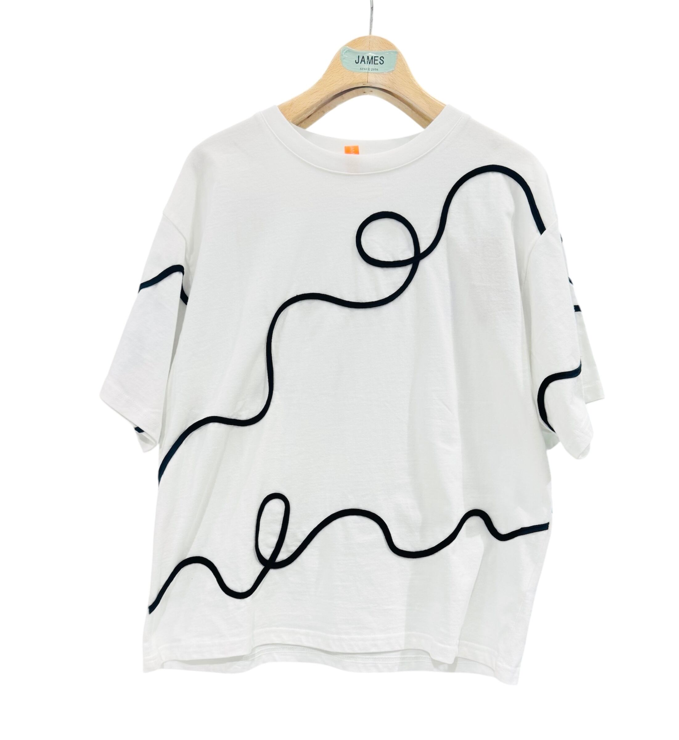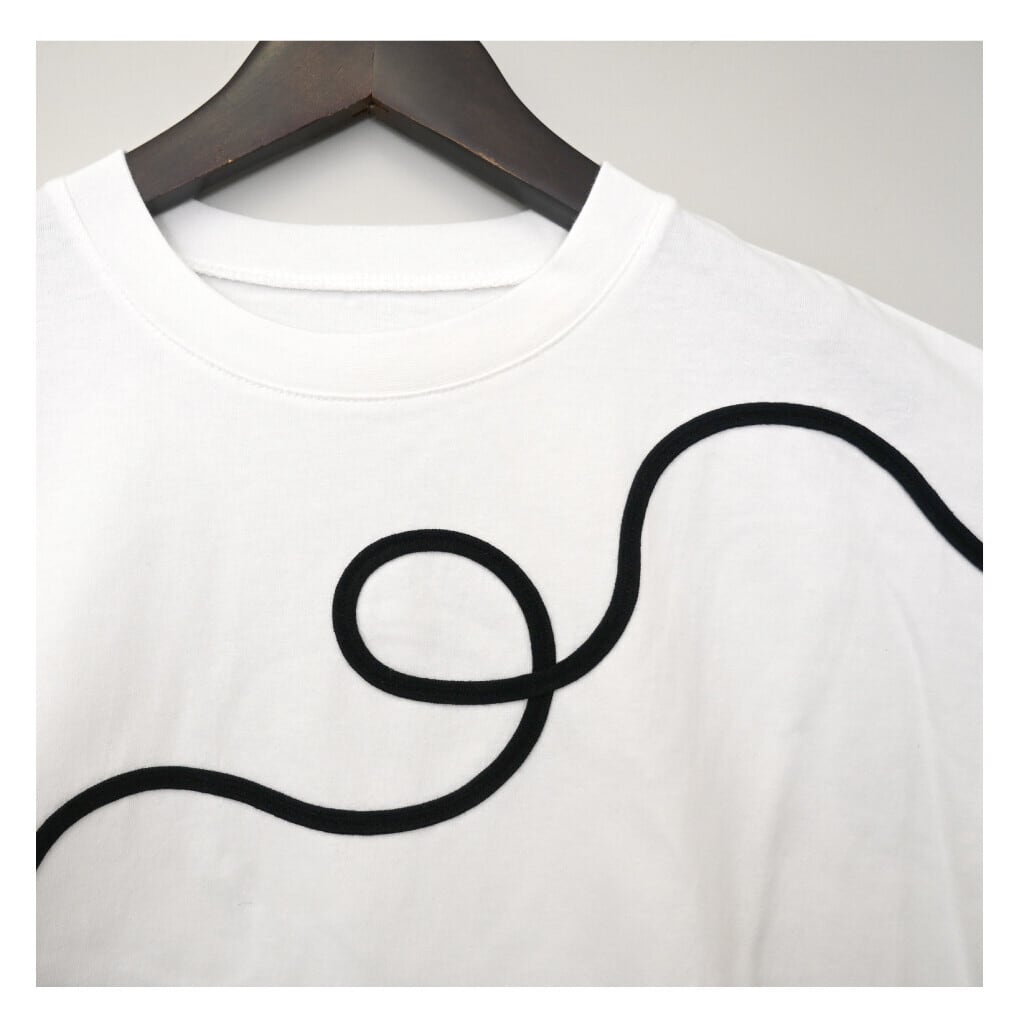 白地に黒のロープ刺繍tシャツ
