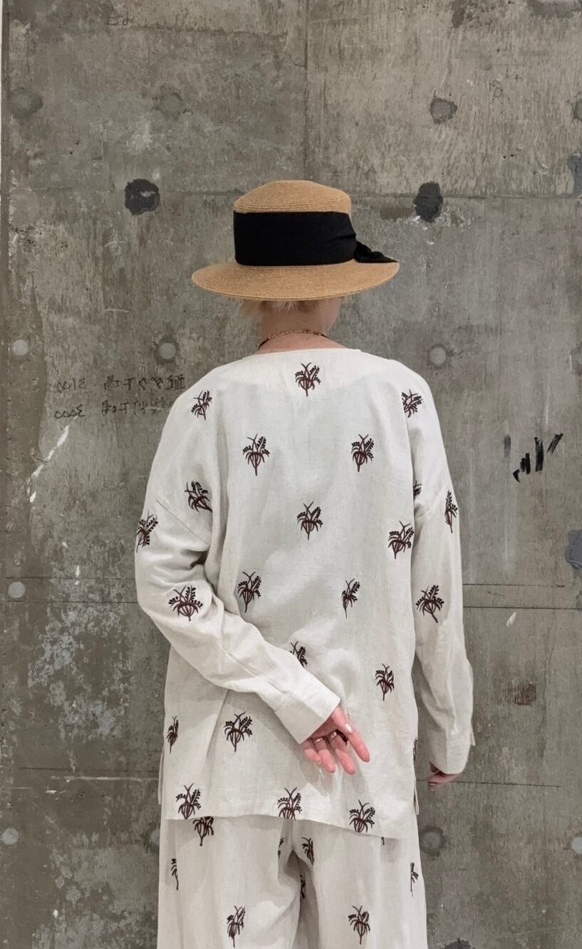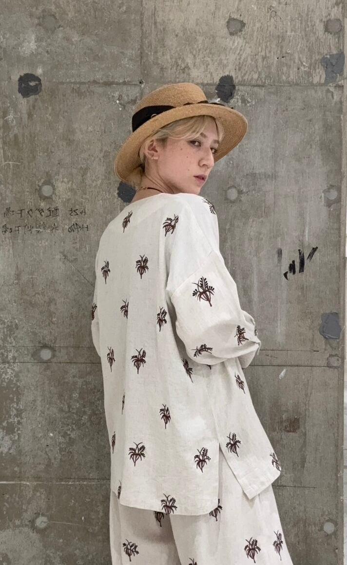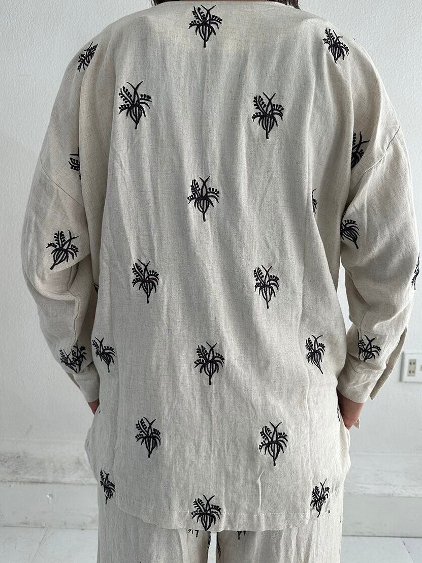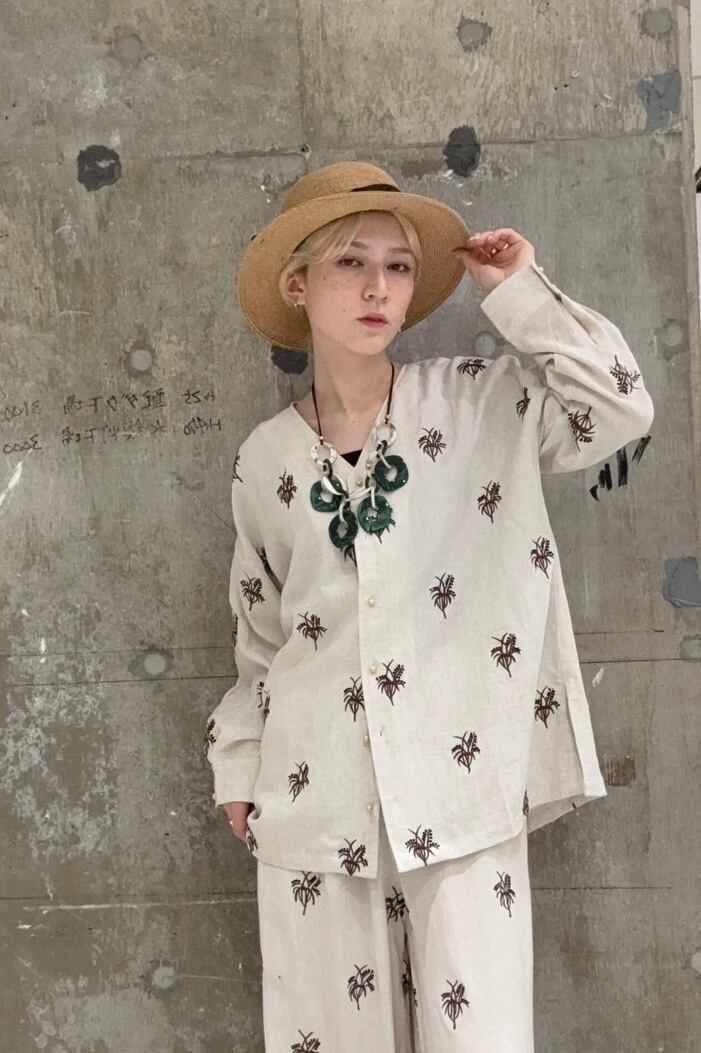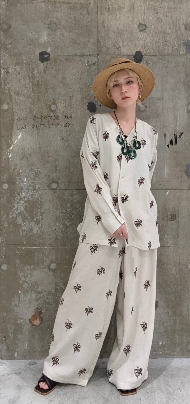 同じ刺繍のパンツとセットアップで着ていただくのおすすめです。