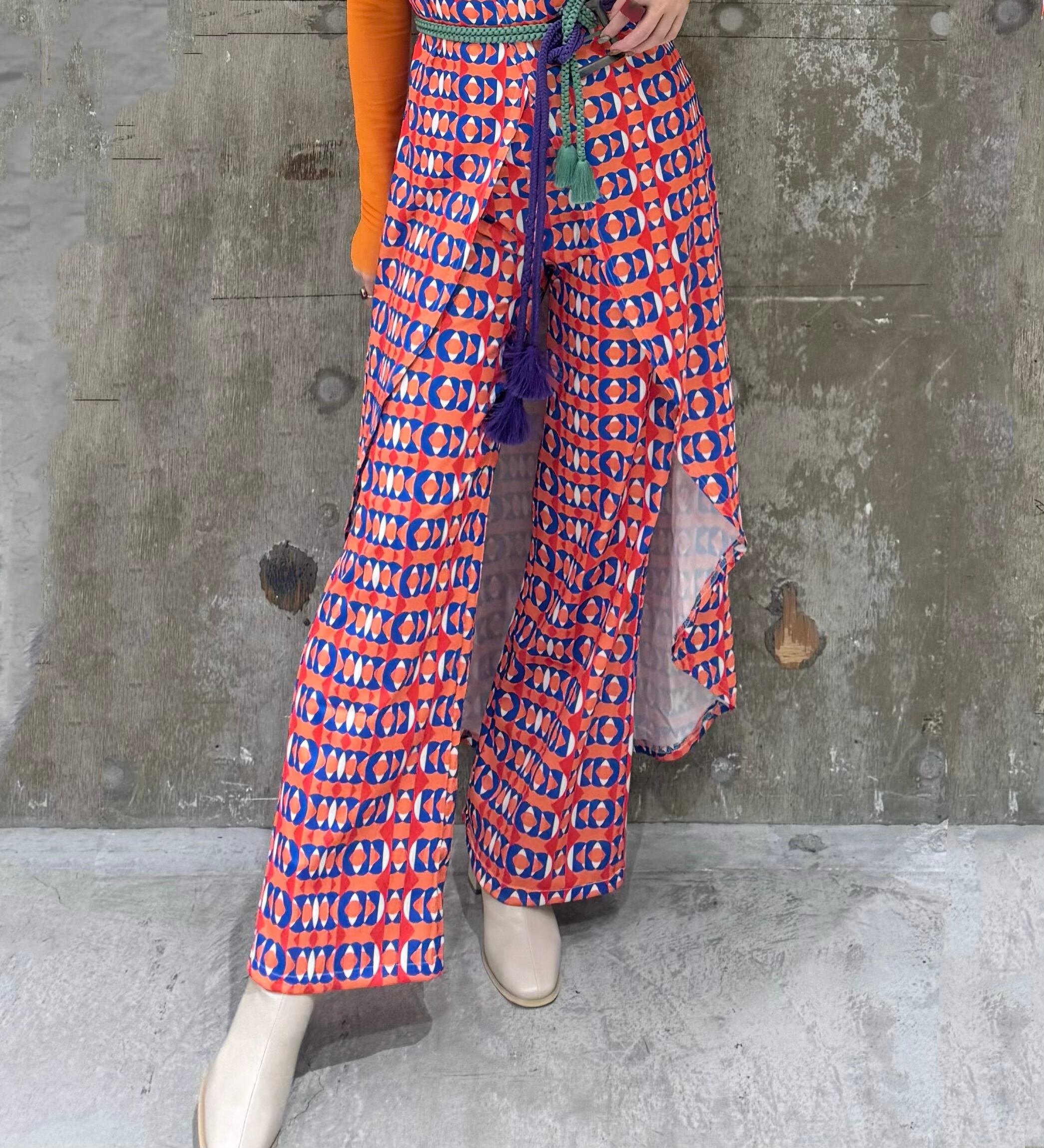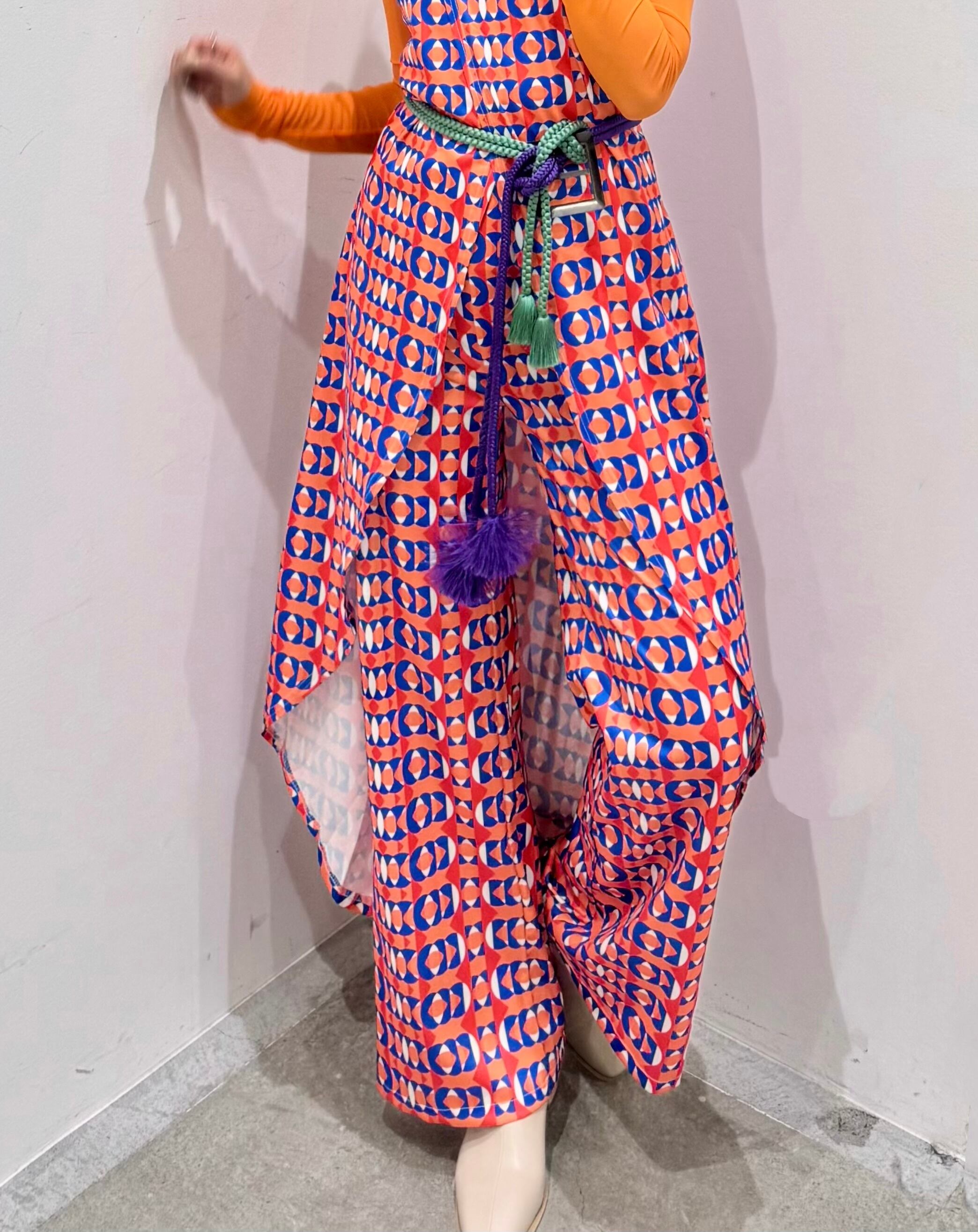 セットアップ パンツのみの販売ページです。 サイズ フリー モデル身長158 ウエスト全ゴム ウエスト68〜82 股上30 着丈96 素材 ポリエステル90% ポリウレタン10%