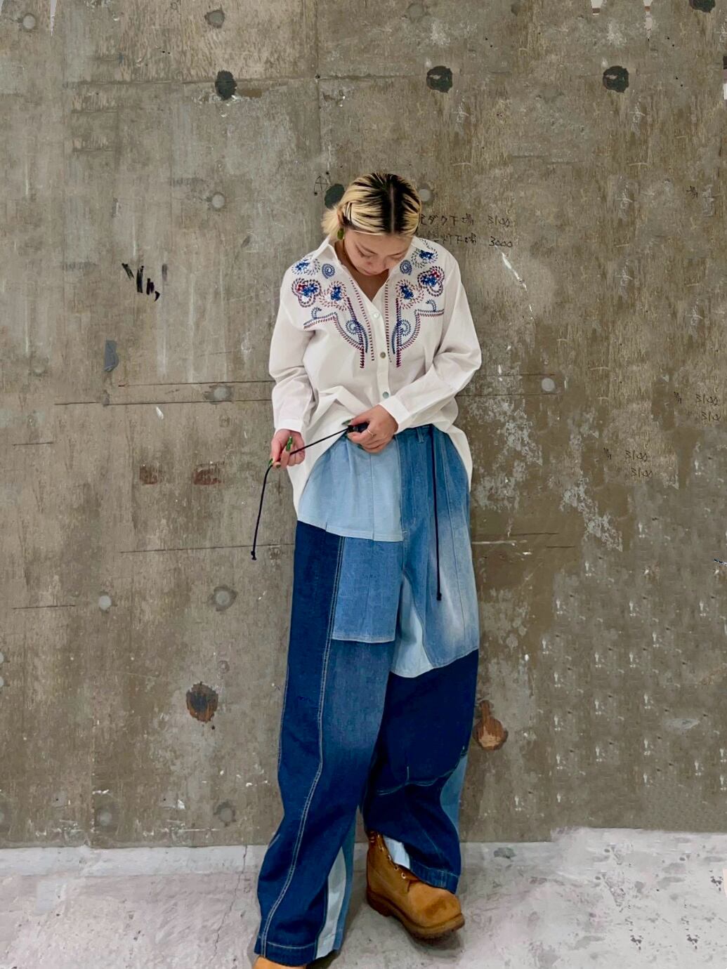 サイズ フリー ウエスト半ゴム ウエスト66〜88 股上40 着丈98 素材 綿100%