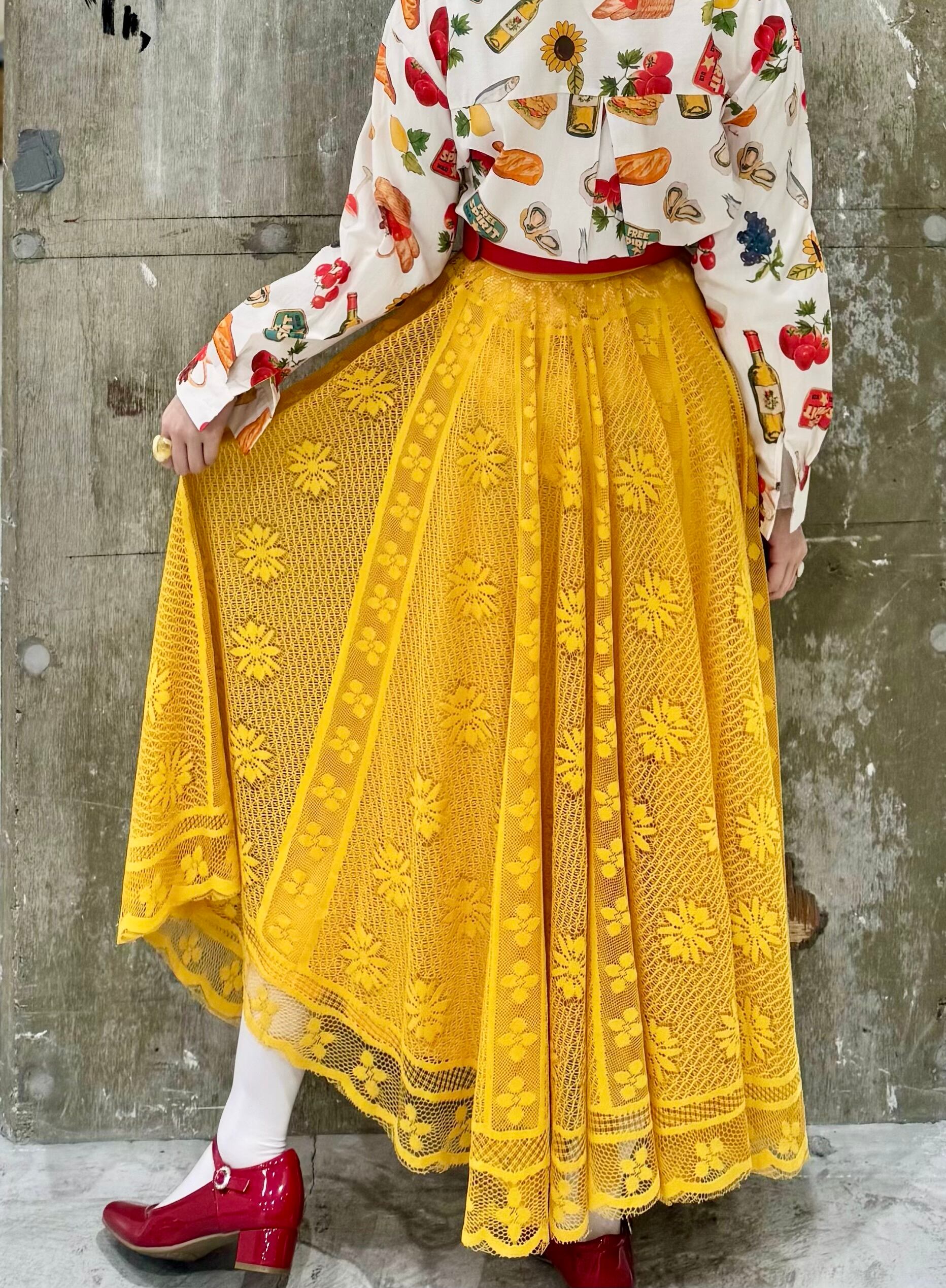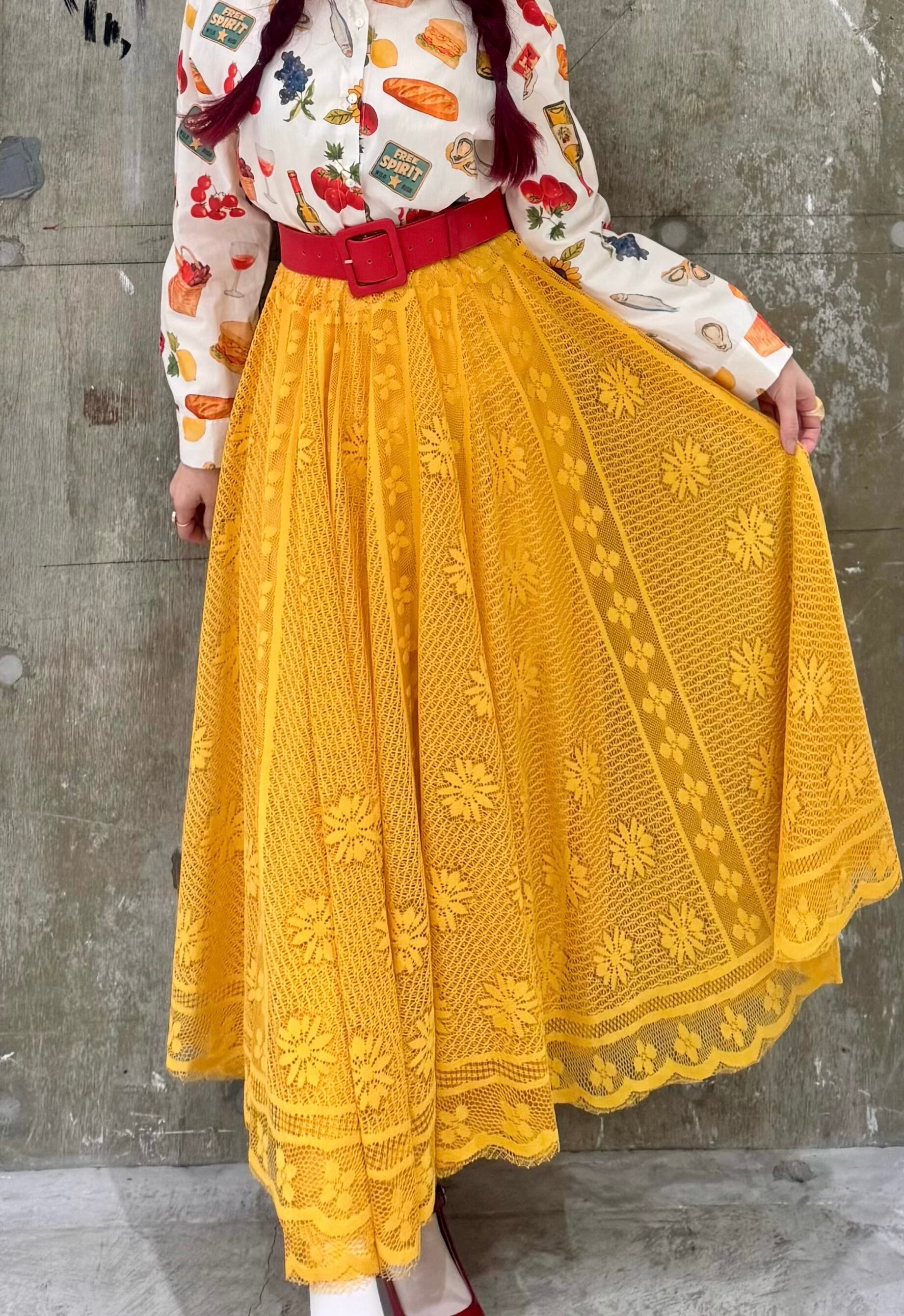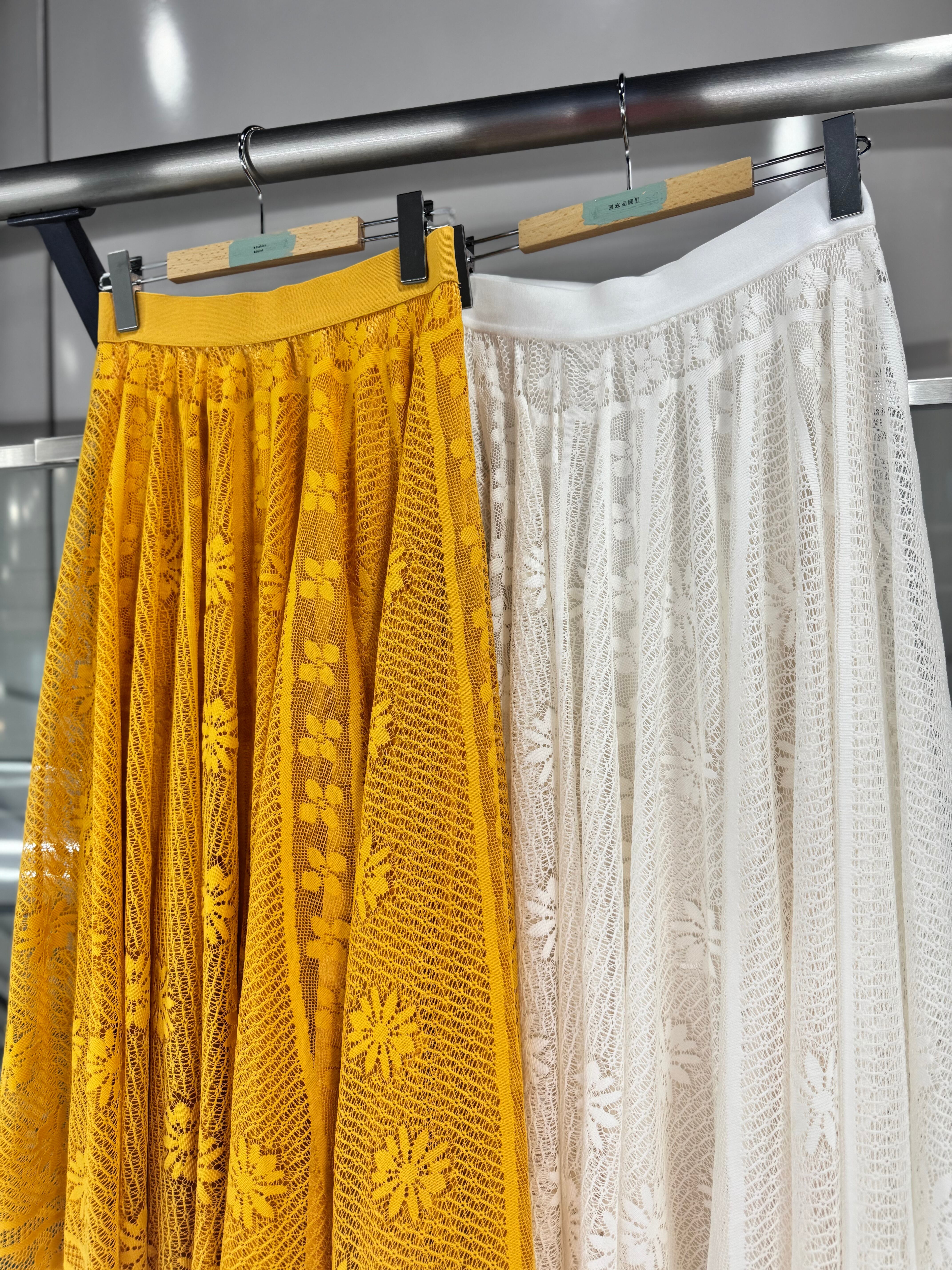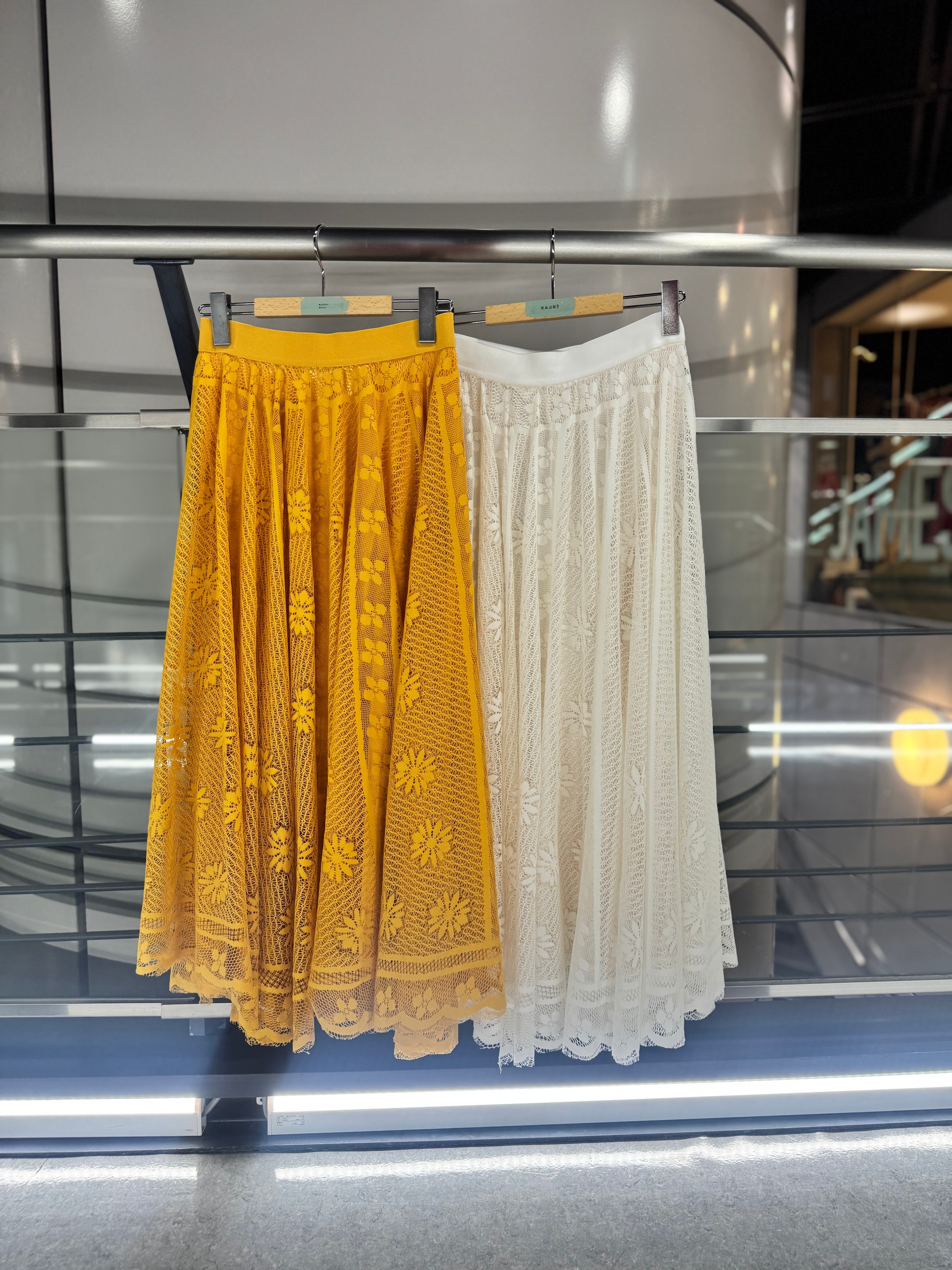 2カラー イエロー/ホワイト モデル着用カラー イエロー サイズ フリー モデル身長158 ウエスト全ゴム ウエスト64〜77 身長154〜162 着丈84 素材 ポリエステル100%