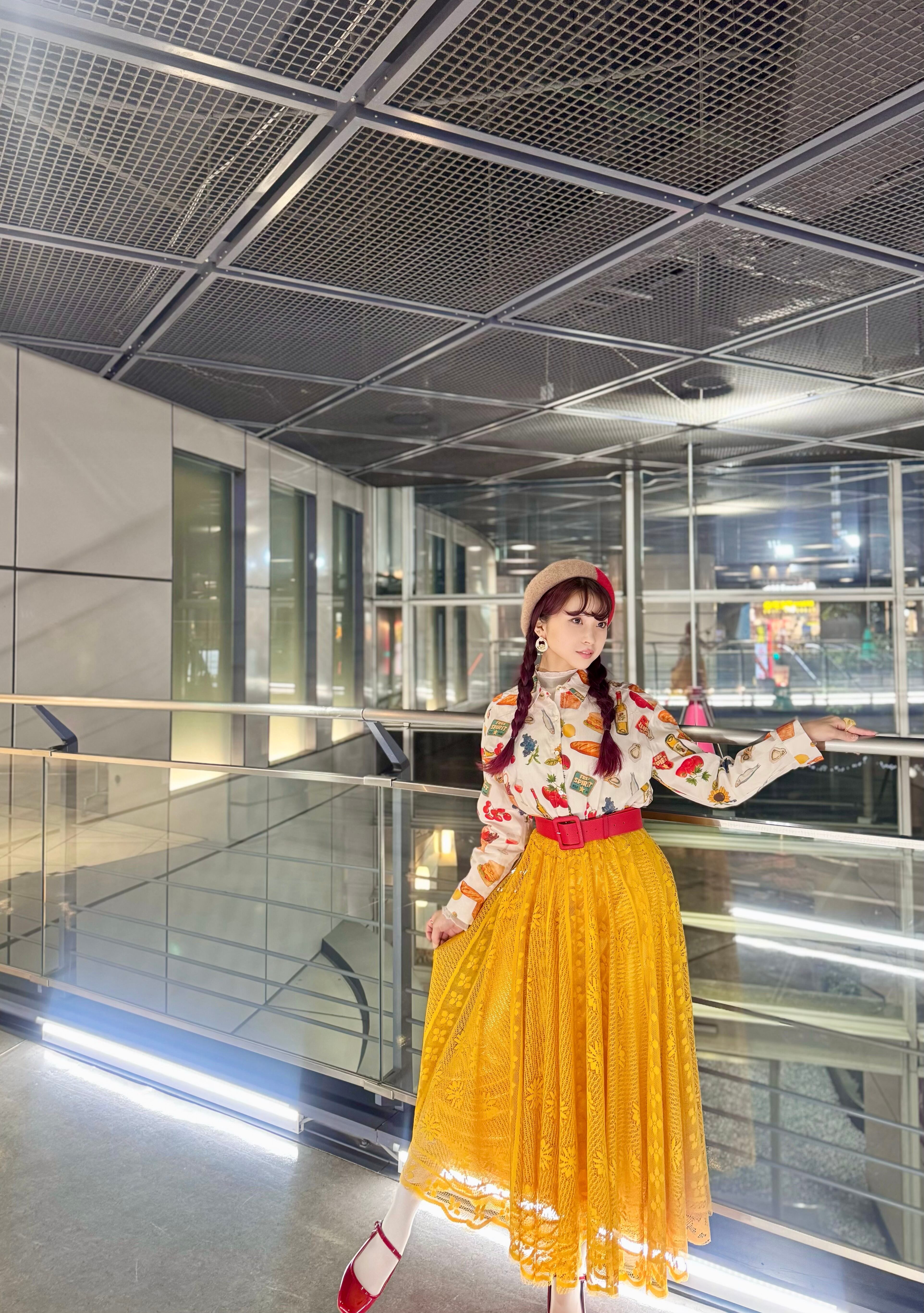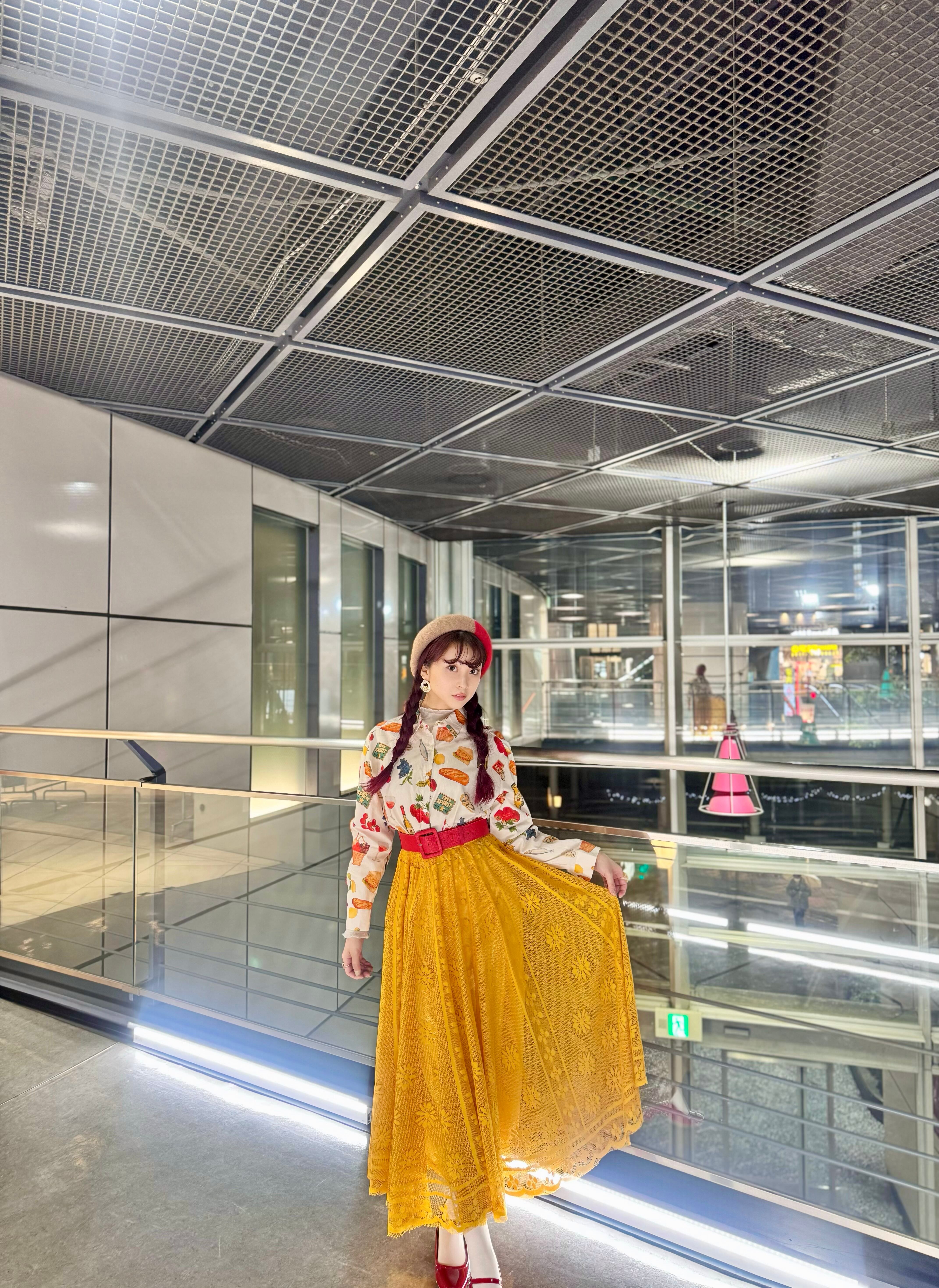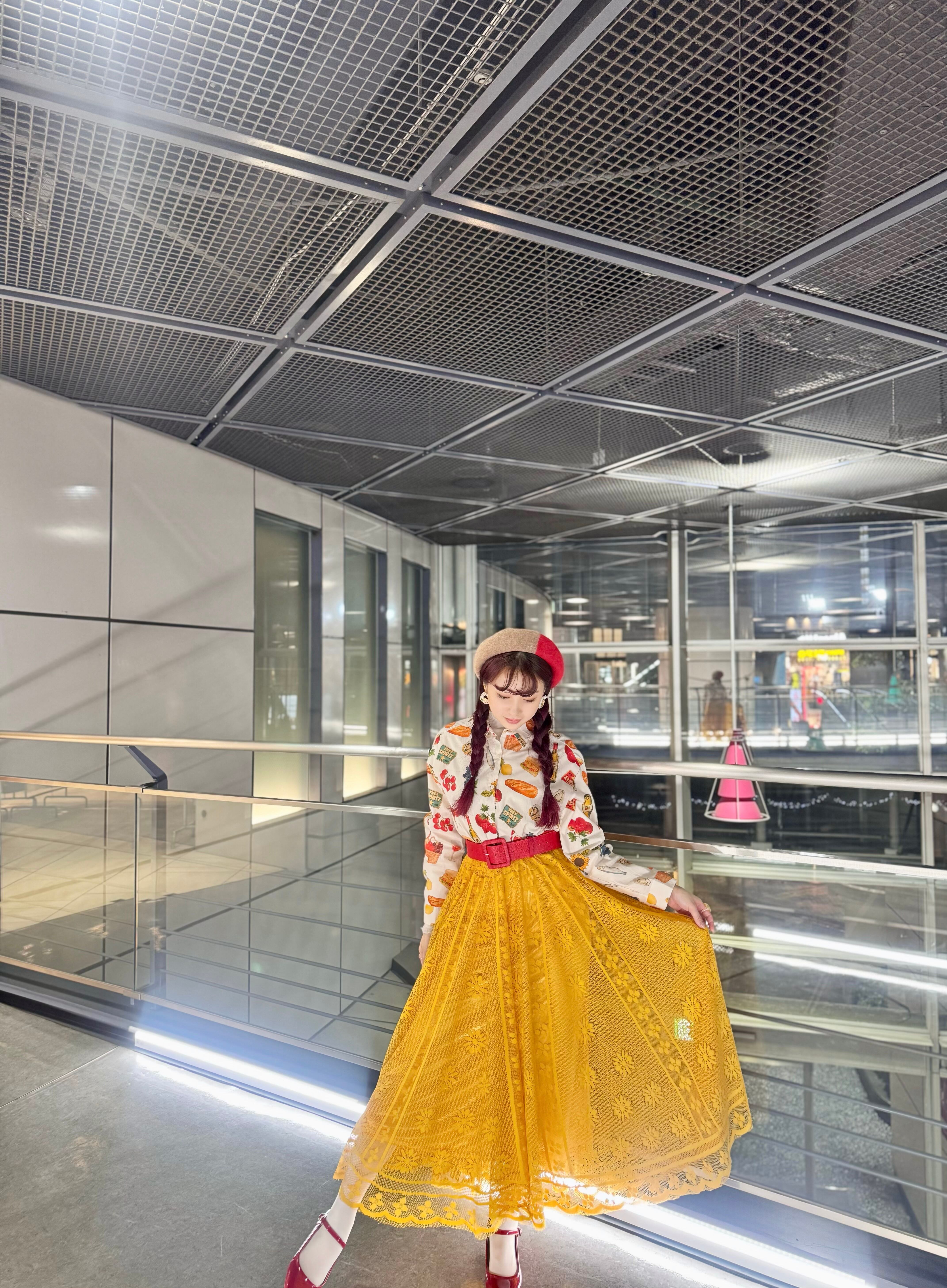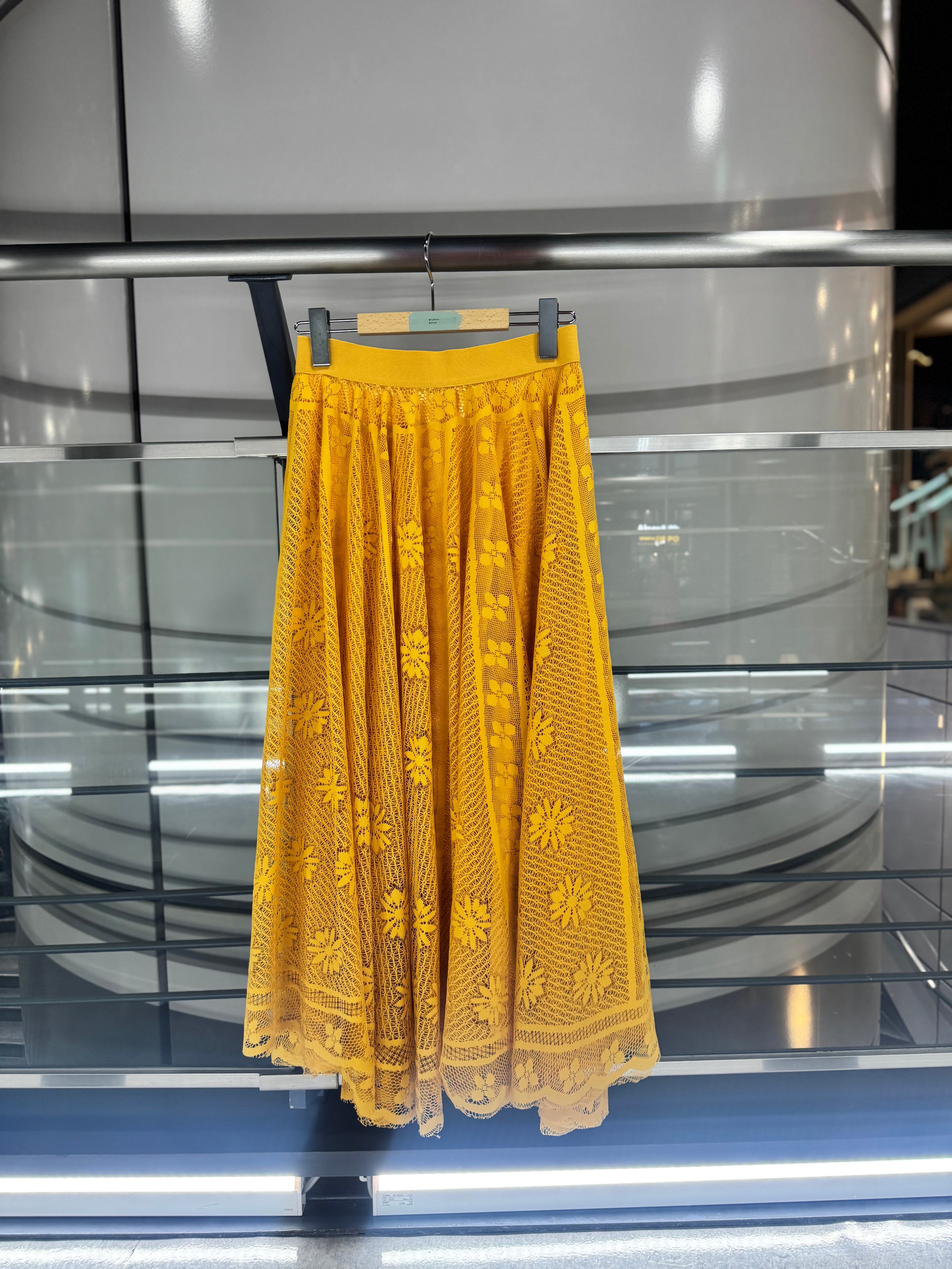 2カラー イエロー/ホワイト モデル着用カラー イエロー サイズ フリー モデル身長158 ウエスト全ゴム ウエスト64〜77 身長154〜162 着丈84 素材 ポリエステル100%