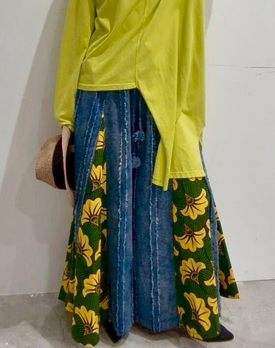 サイズ フリー モデル身長158 ウエスト全ゴム ウエスト70〜90 ウエスト調節紐あり 股上37 着丈94 素材 コットン100% 着ている感じスカートに見えるような かなりワイドなパンツです☺︎