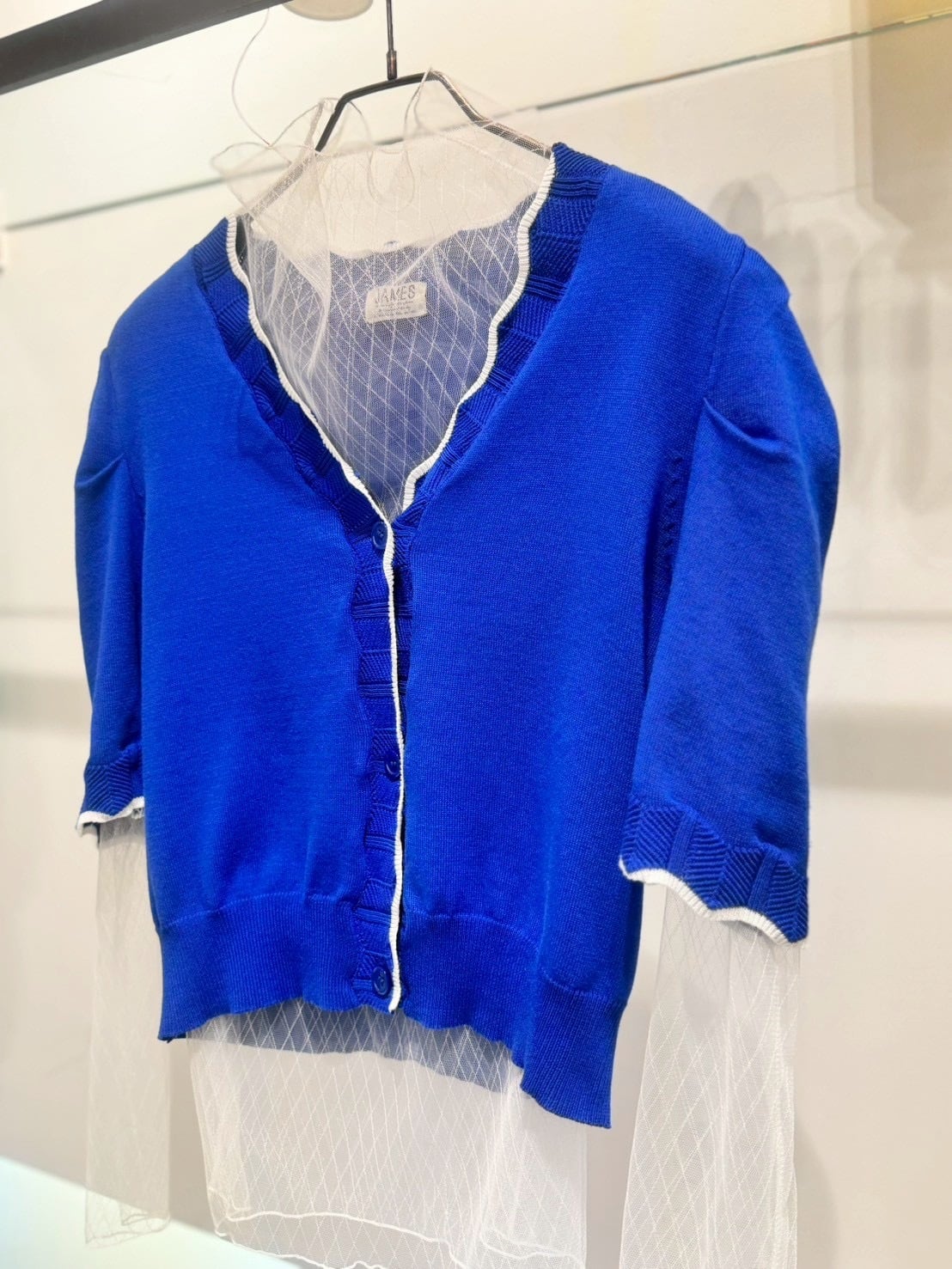 ショートカーディガンとシアーインナーのセットです。