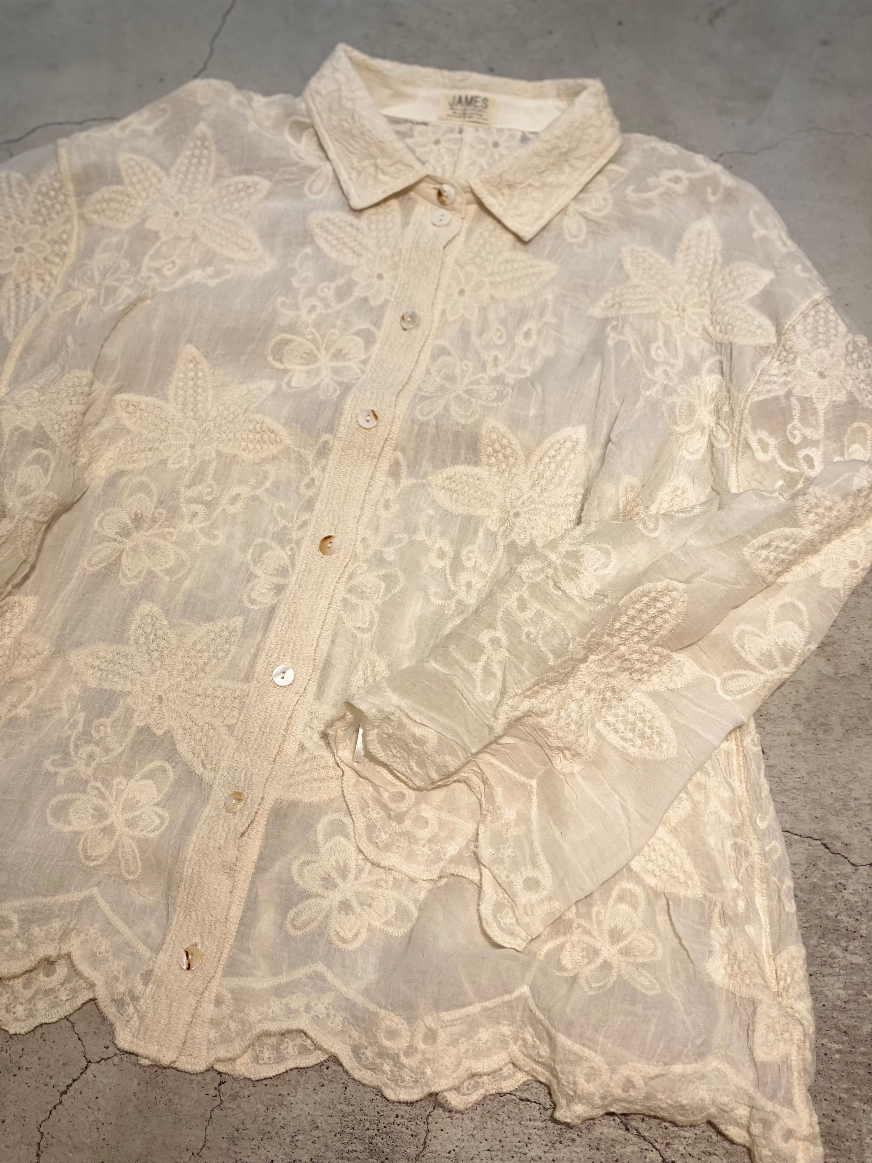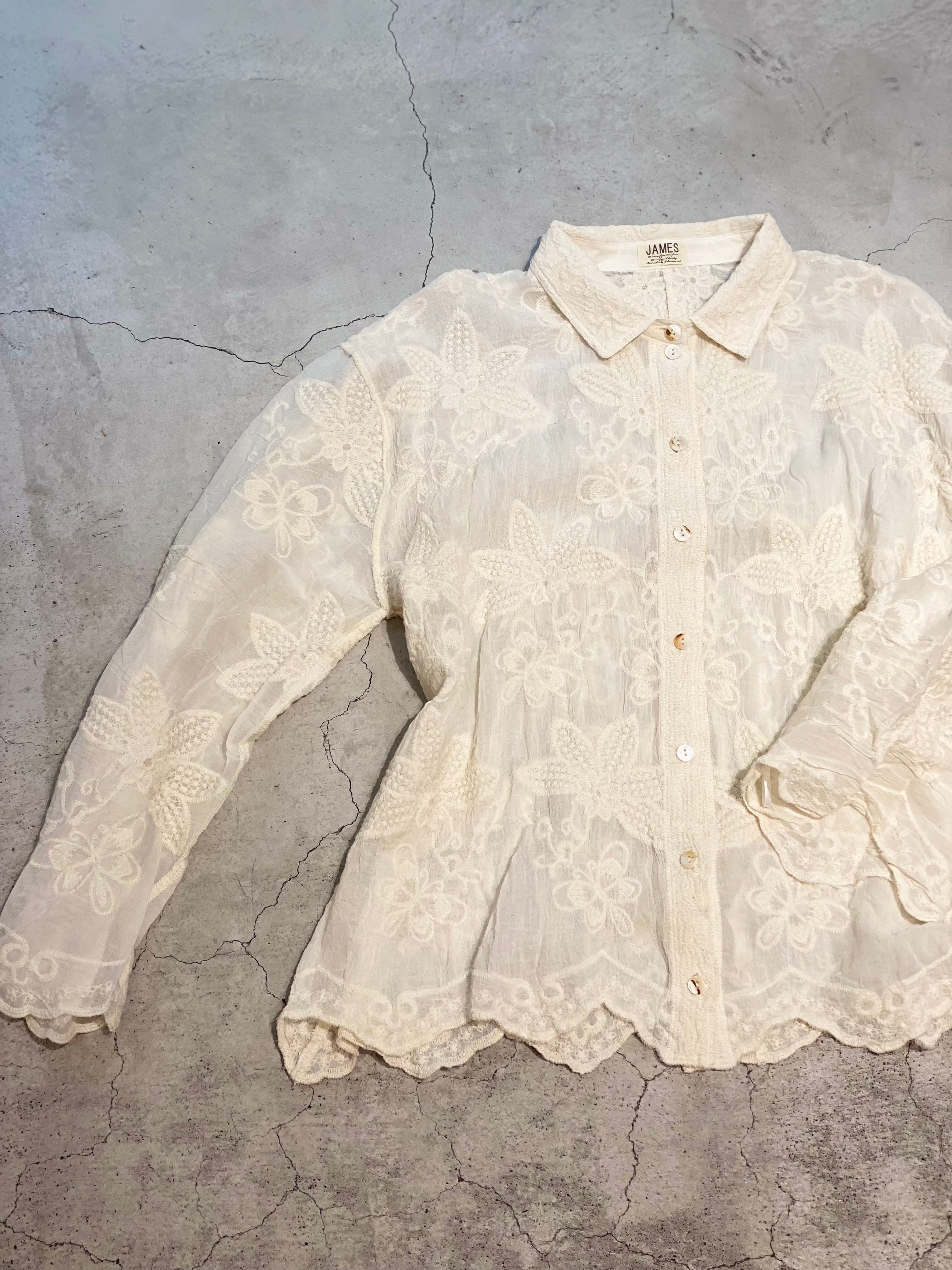 コットンレースのシンプルなシャツです。 可愛らしすぎず柔らかな印象になります。 羽織としても◎