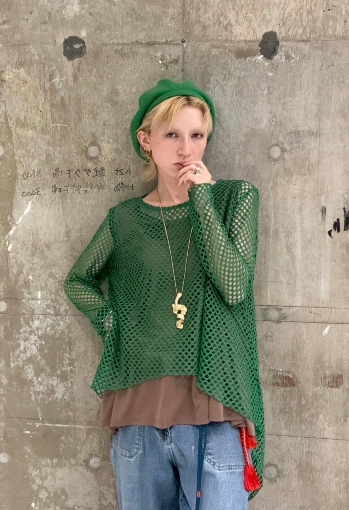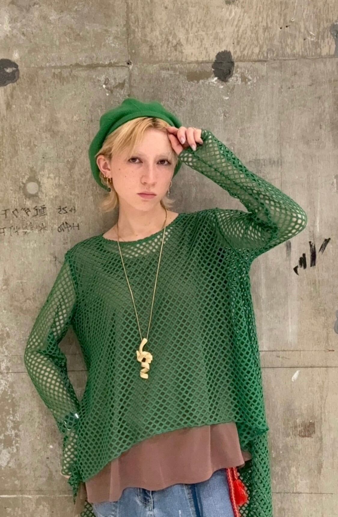 繊細なメッシュ素材、前後差のあるハイロー丈が 動きにニュアンスを加え、スタイリングに奥行きを生み出します。 パッと着るだけで、エッジを効かせたスタイルに☆彡 綿、麻、デニム、コットンなどのカットソーやシャツなど、 幅広く合わせられるので、オールシーズン着回しOK! 【サイズ】 着丈:48cm(前)89cm(後) 肩幅:41cm 身幅:53cm 裾幅:79cm 袖丈:56cm 【素材・成分】 ポリエステル95% ポリウレタン5%