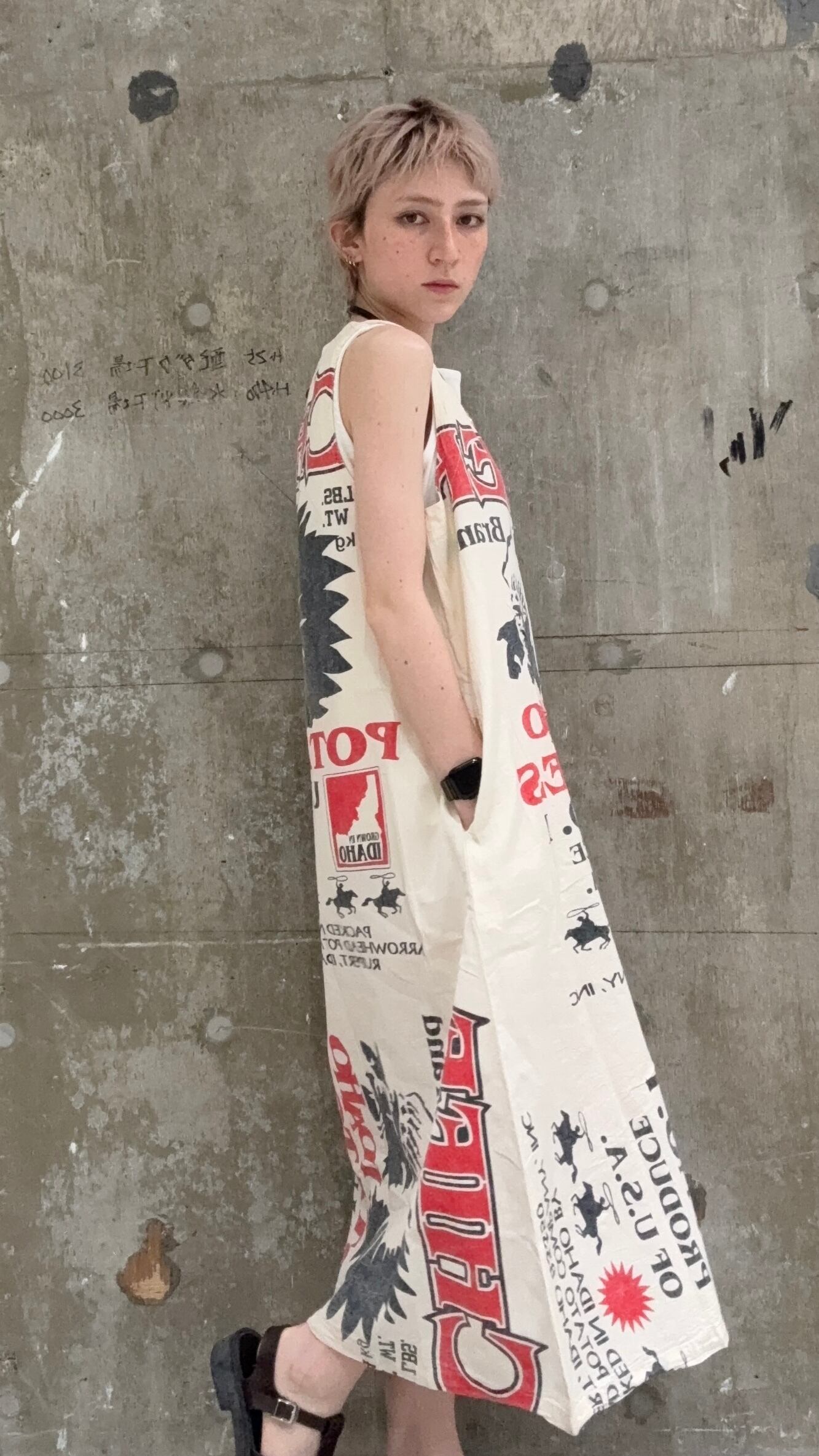 ヴィンテージ感のあるプリントがポイント! コットン100%でサラッと気持ちよく着用できる1枚。 夏のお出かけにおすすめです♩ 【サイズ】 肩 約30センチ バスト 約52センチ 丈 約115セン 【素材】コットン