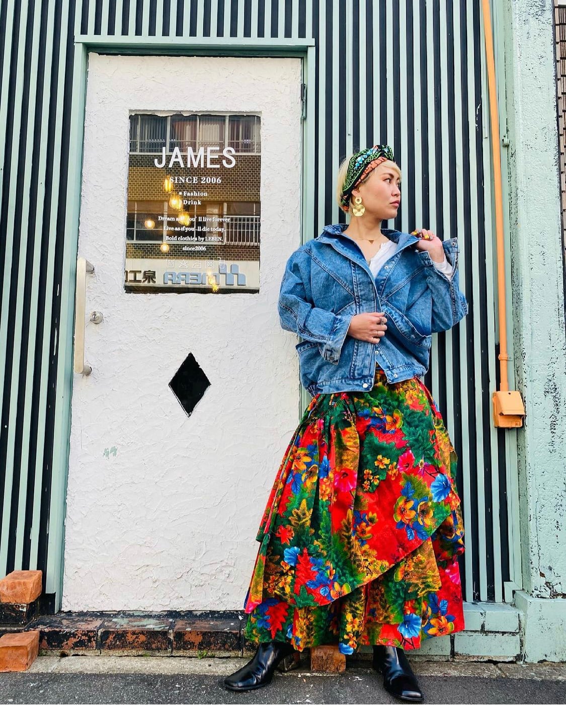 ヴィンテージライクな花柄が大胆にプリントされたスカートです。